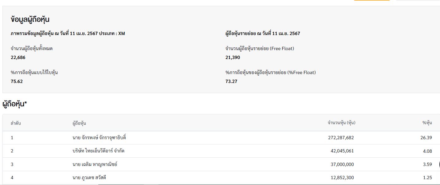 จำนวนผู้ถือหุ้นรายย่อย (Free Float) 21,390