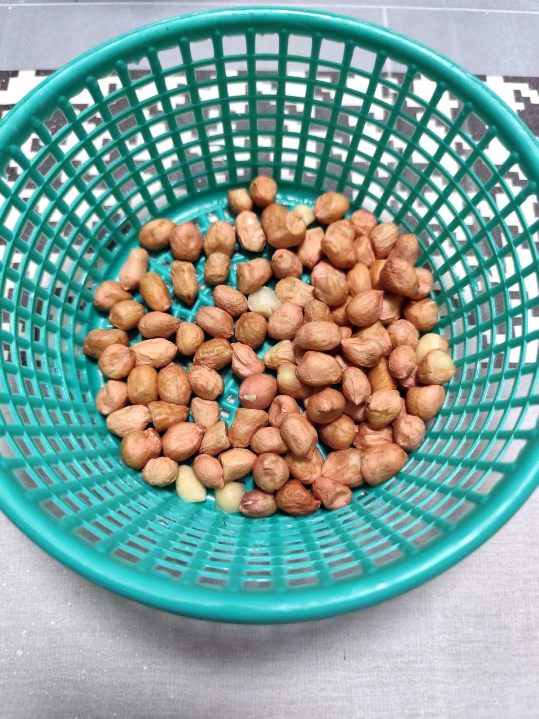 ถั่วลิสง เอาไปแช่น้ำไม่ต้องนานมาก แล้วเทน้ำออก