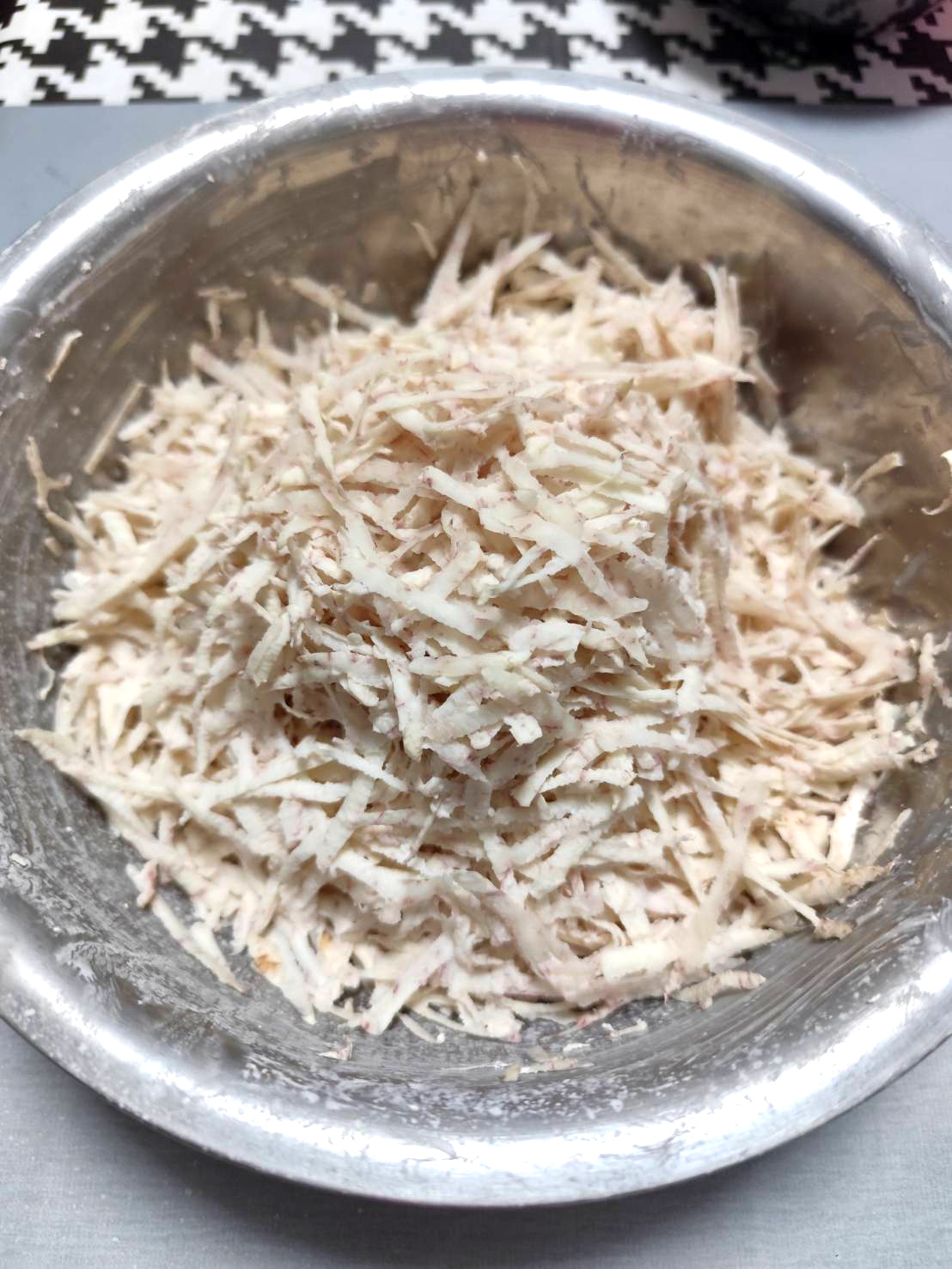 เผือก เราขูดให้พอดีทอดในแต่ละครั้ง