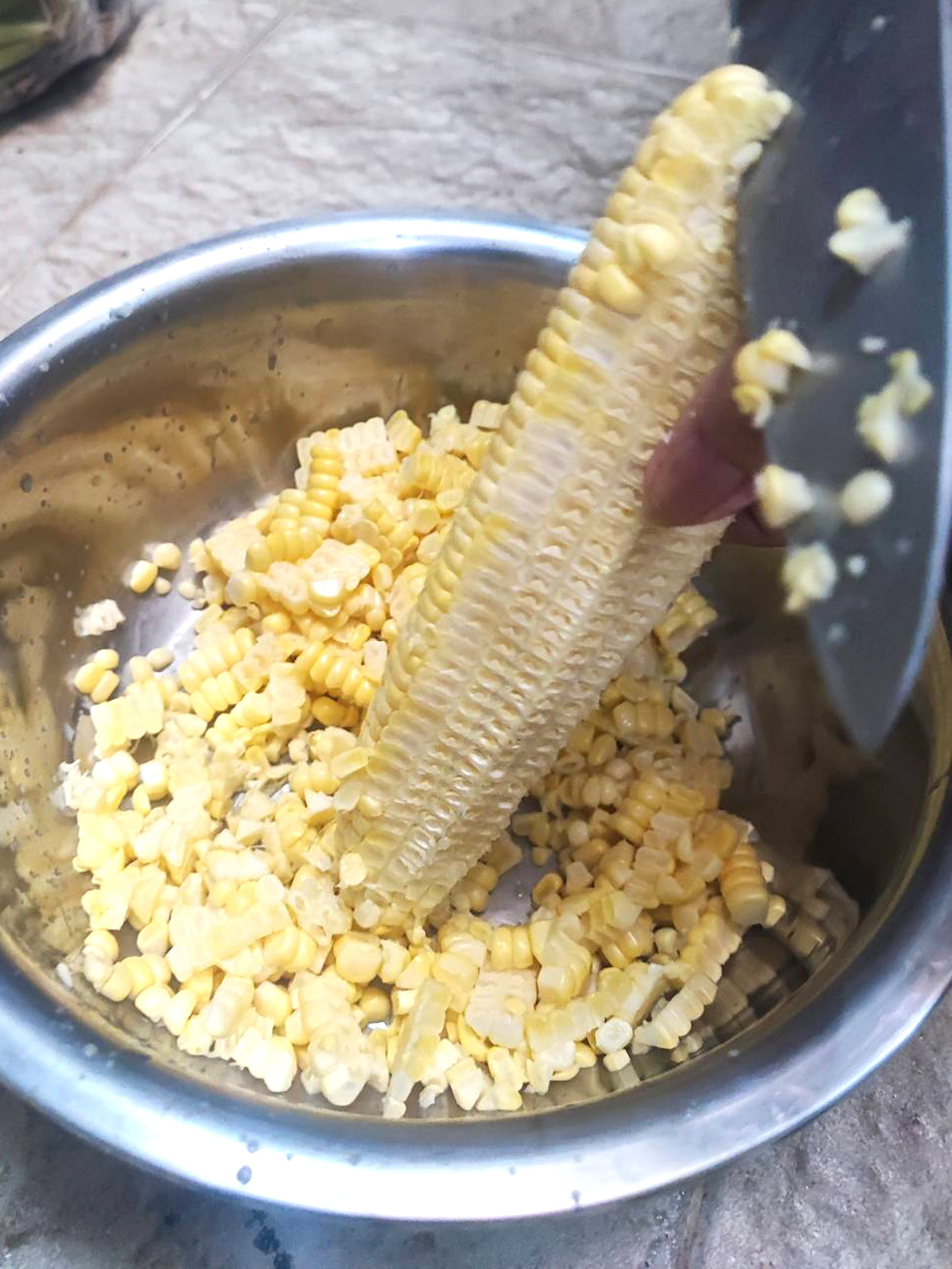 ส่วนข้าวโพด ฝานข้าวโพดเตรียมไว้ เราใช้ 3 ฝัก ในการทอดครั้งนี้