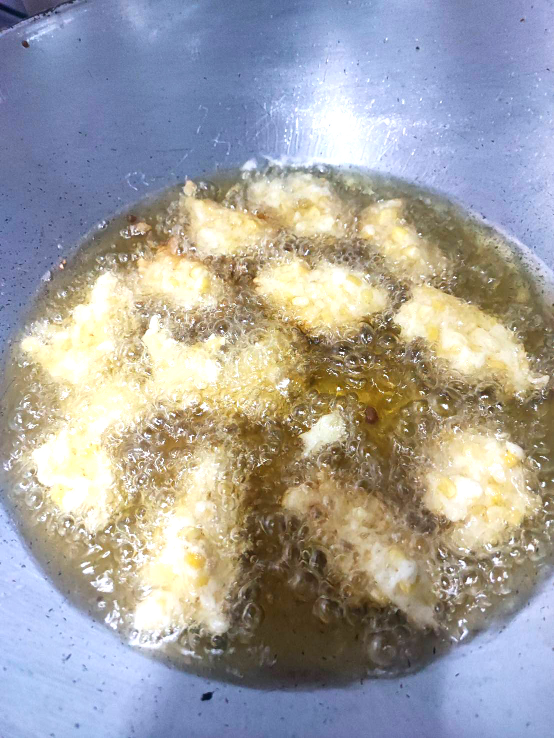 เวลาที่บ้านเราทำเผือกทอด ข้าวโพดทอด ก็จะทำทีละเยอะๆ