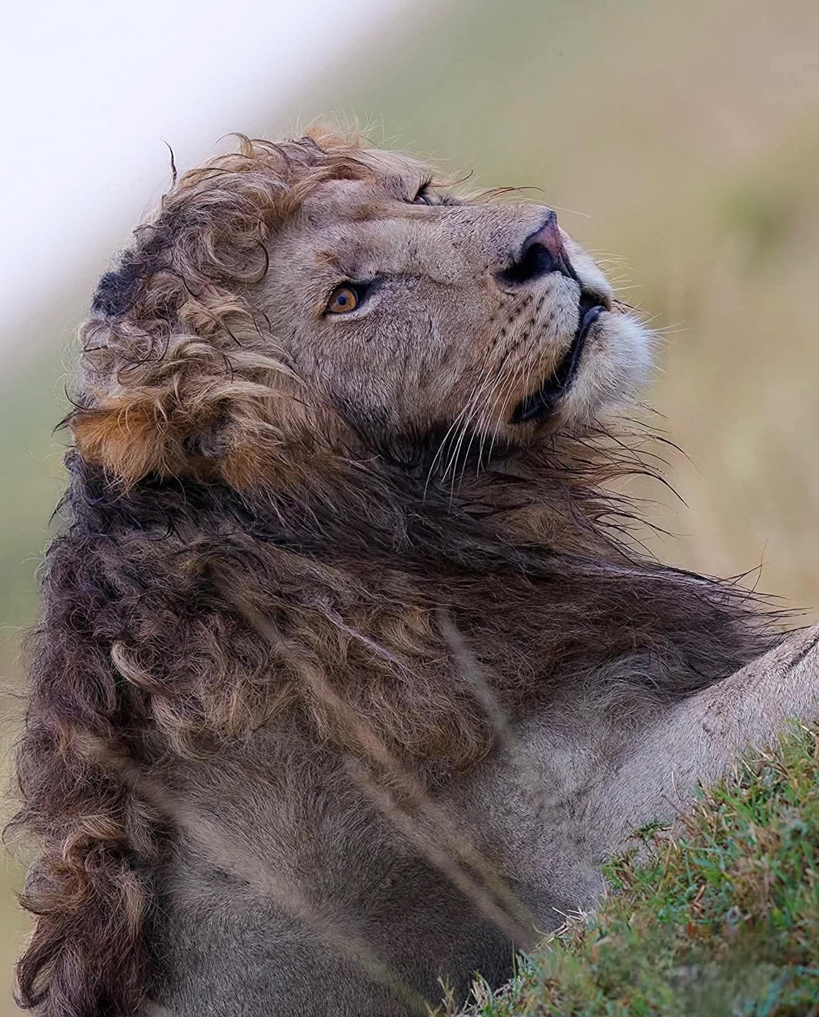 🦁ช่างภาพสันนิษฐานว่า ลอนผมที่สวยงามนี้อาจเกิดจากการผสมผสานระหว่าง พันธุกรรม ความชื้นในอากาศ และการที่แผงคอที่เปียกฝนได้ แห้งตามธรรมชาติด้วยแรงลม ในทุ่งหญ้าสะวันนา