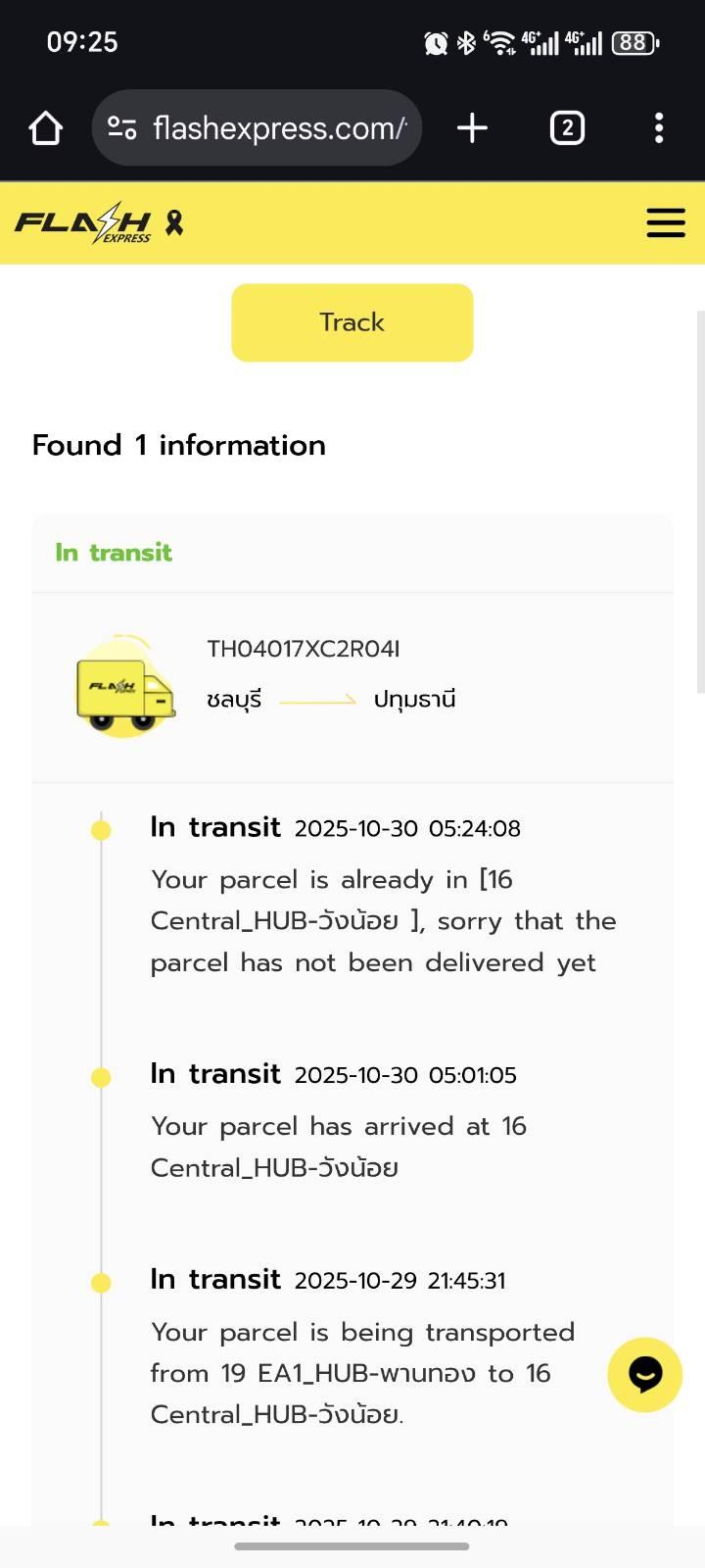 Your parcel is already in [16 Central_HUB-วังน้อย ], sorry that the parcel has not been delivered yet จะได้รับของตอนไหน