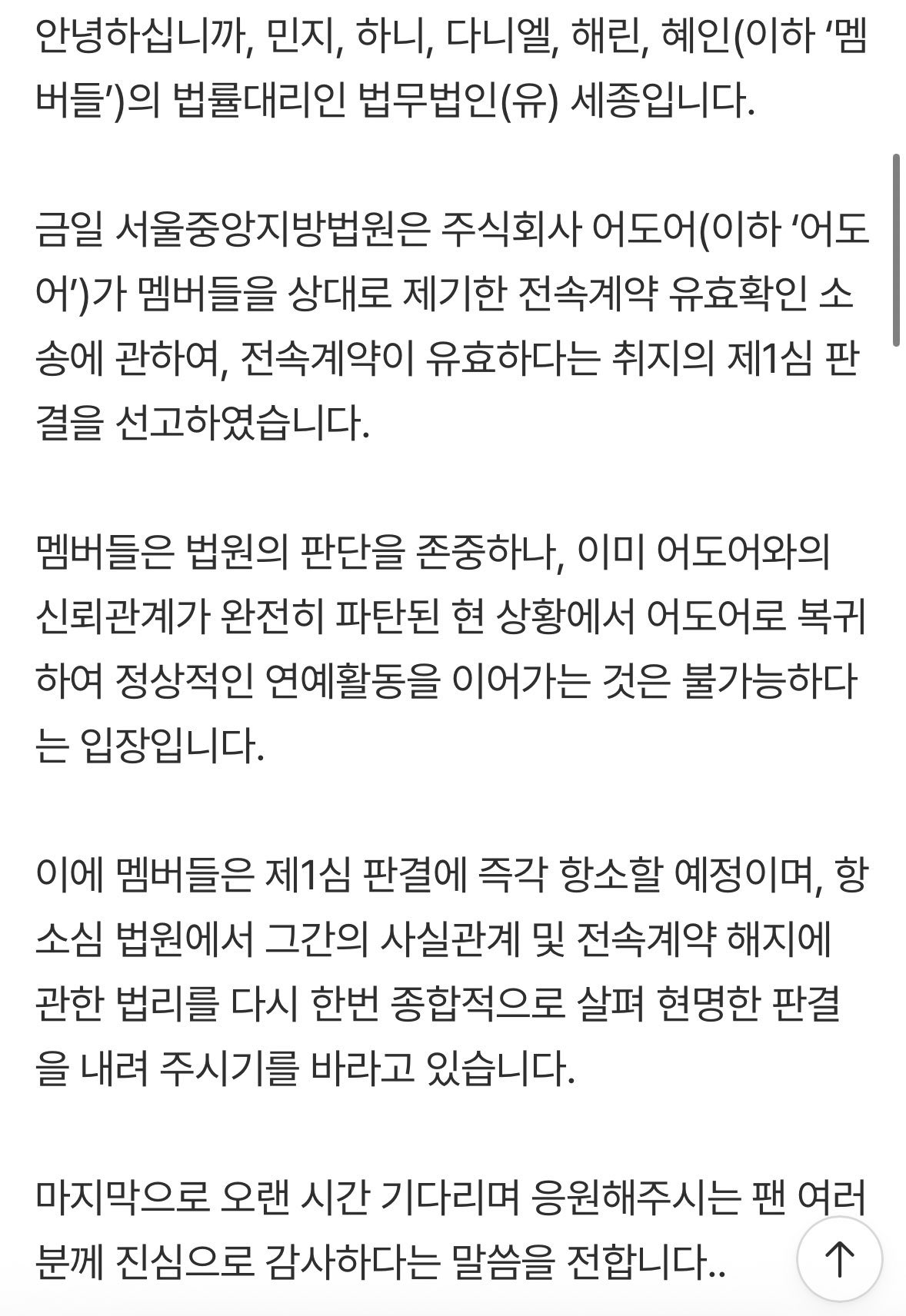 วันนี้ ศาลแขวงกลางกรุงโซลได้มีคำพิพากษาชั้นต้นในคดีที่ยื่นฟ้องโดย ADOR Co., Ltd. (ต่อไปนี้จะเรียกว่า “ADOR”) ต่อสมาชิก โดยยืนยันความถูกต้องของสัญญาพิเศษ