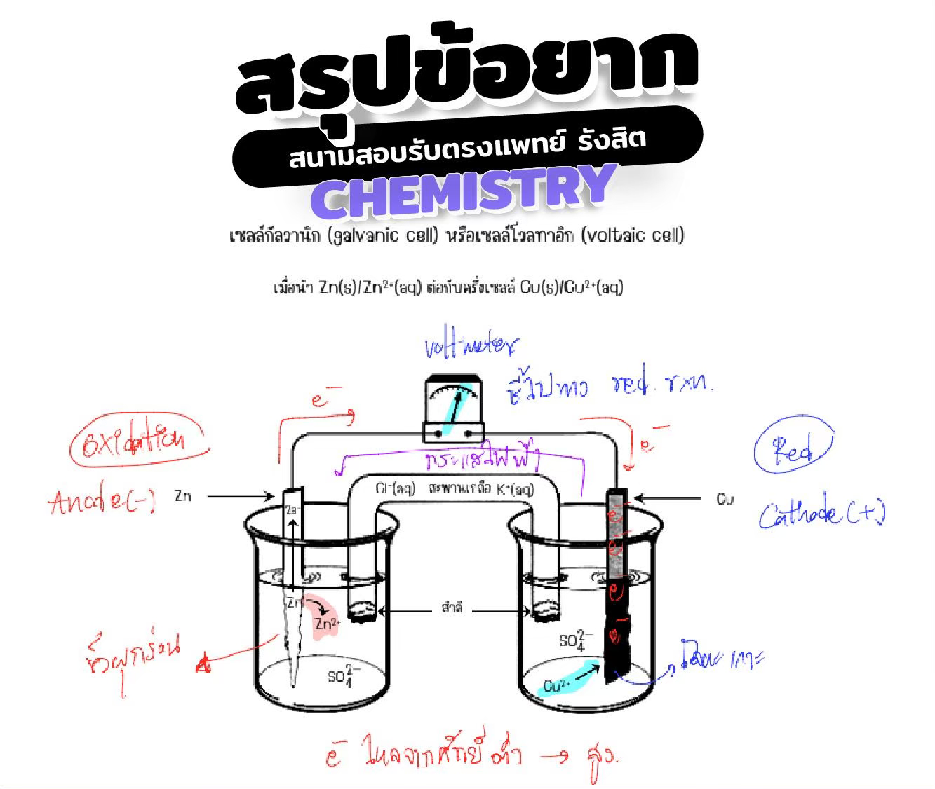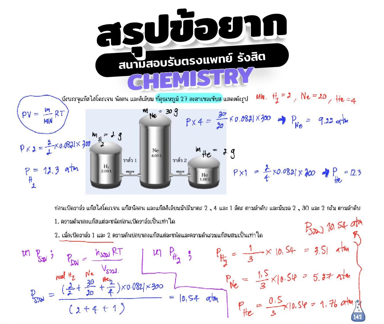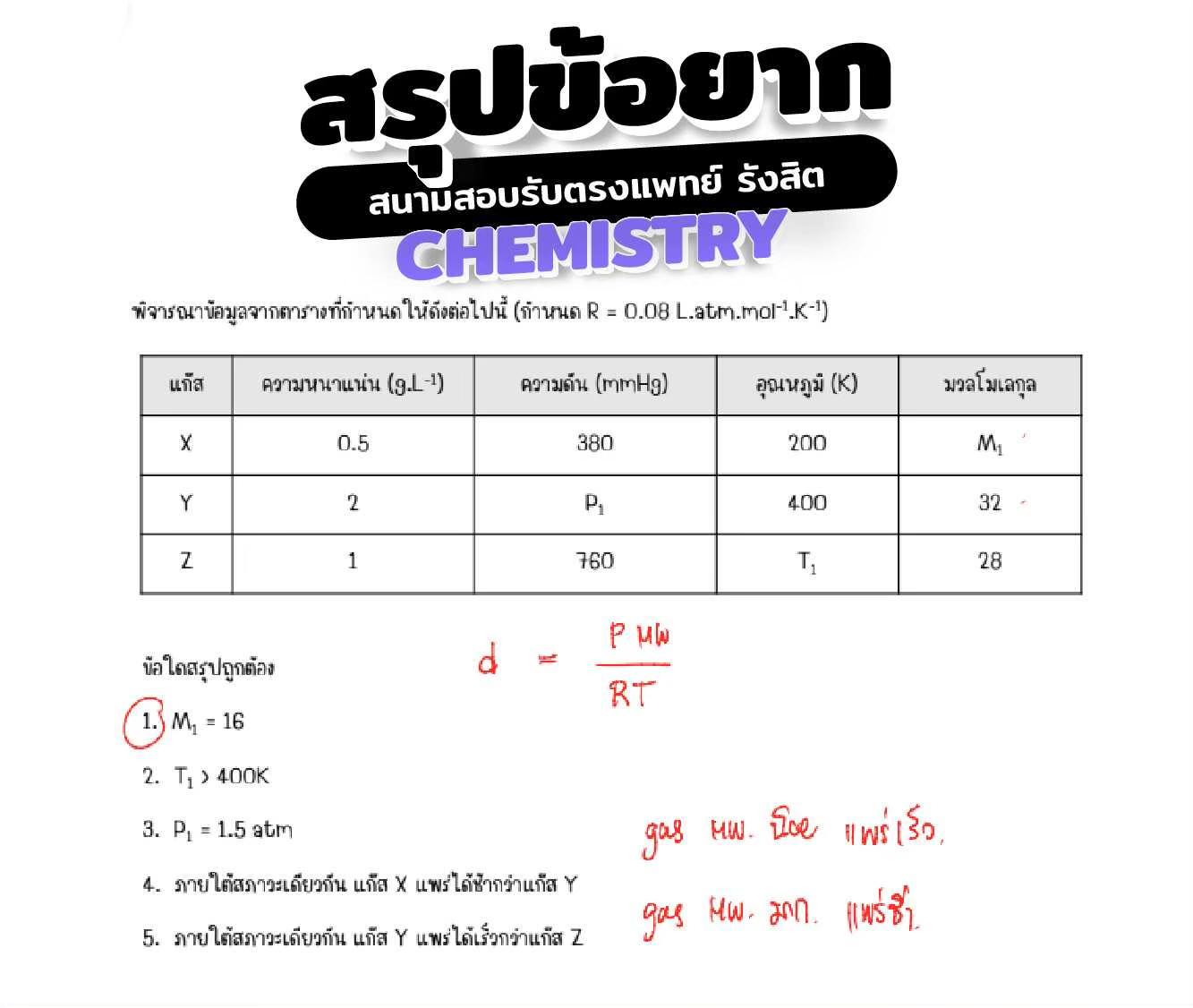 ภาพที่เราเห็นอยู่นี้เป็นเพียงตัวอย่าง "ข้อสอบยาก" ที่ออกสอบจริงในสนาม รับตรงแพทย์รังสิต ที่ต้องอาศัยความเข้าใจพื้นฐานเรื่องแก๊ส (Gas Law) และเซลล์ไฟฟ้าเคมี (Galvanic Cell) อย่างแม่นยำ