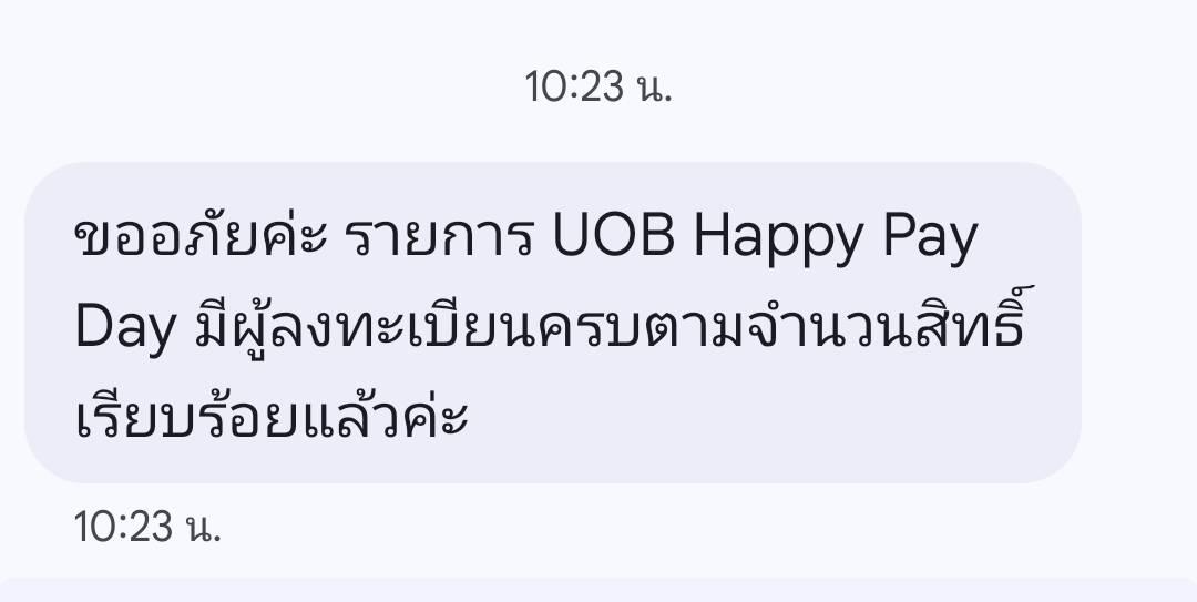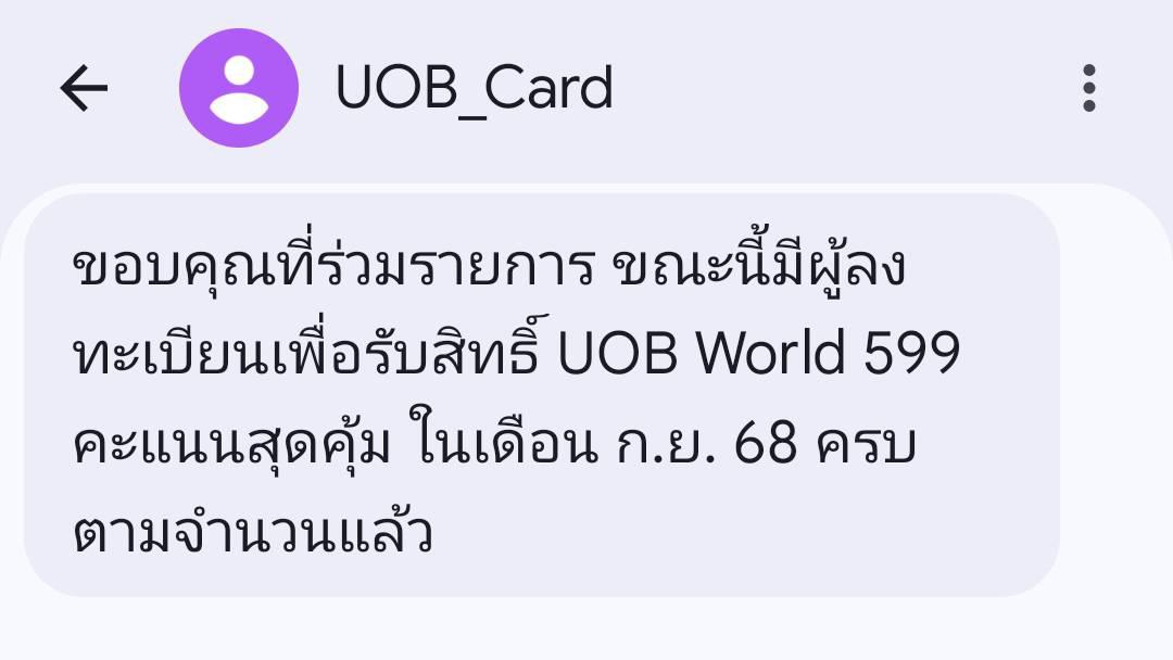 อยากสอบถามครับ มีข้อสงสัยเหลือเกิน UOB เวลาทำโปรโมชั่นให้ลูกค้าทำไมต้อง ลงทะเบียนด้วย SMS เท่านั้น แล้วสิทธิ์ก็มีจำกัด เพียงน้อยนิด พอส่ง SMS ไปแล้วสิทธิ์เต็ม ลูกค้าก็เสียค่า SMS ฟรี ครั้งละ 3 บาท ไม่ได้สิทธิ์แล้วยังเสียเงิน