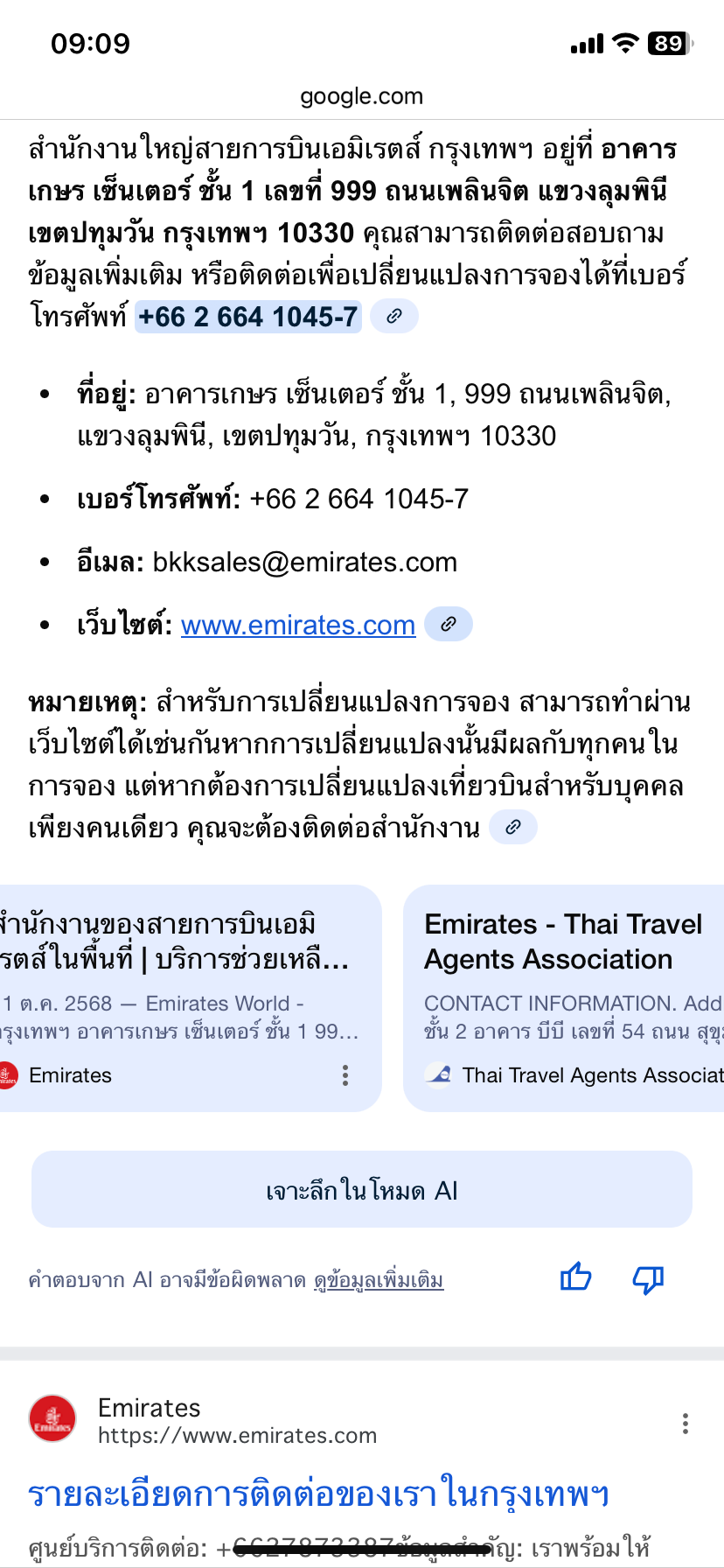 3. ถ้าต้องการไปติดต่อ emirates ที่สนง. เพื่อแก้ booking สามารถไปติดต่อได้ที่ไหนคะ เพราะเปิด gg ดูแล้ว มี 2 ที่อยู่ อาคาร บีบี, อาคารเกษร