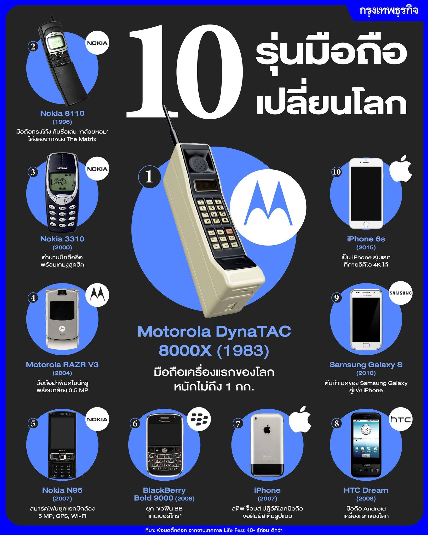 หากย้อนไปในอดีตเราจะเห็นว่ามือถือมีการพัฒนาเปลี่ยนรุ่นและเทคโนโลยีไปอย่างมากมาย แต่จะมีเพียง 10 รุ่นเท่านั้นที่ถือได้ว่าเป็นรุ่นเปลี่ยนโลก
