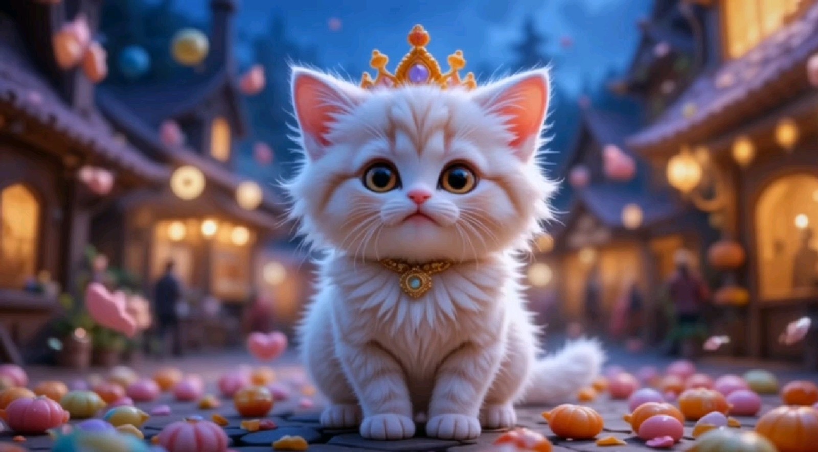 ในคืนเทศกาลฮาโลวีนสุดแฟนตาซี เมืองทั้งเมืองถูกแต่งแต้มด้วยแสงไฟและฟักทองเรืองแสง เหล่าแมวเด็กน้อยจากหลากหลายสายพันธุ์ ต่างพากันแต่งชุดแฟนซีออกเดินพาเหรดบนแคตวอล์กกลางเมือง พวกมันแปลงร่างเป็นมัมมี่, แดร็กคูล่า, แฟรงเกนสไตน์ และแม่มดตัวจิ๋ว พร้อมโชว์ท่าทางน่ารัก ขี้เล่น และเป็นเอกลักษณ์ของแต่ละตัว แม้จะมีเสียงหัวเราะและความซนวุ่นวาย แต่ทุกตัวต่างมีหัวใจเต็มไปด้วยมิตรภาพและความสุขในค่ำคืนฮาโลวีนที่ไม่มีวันลืม 💜🎃✨