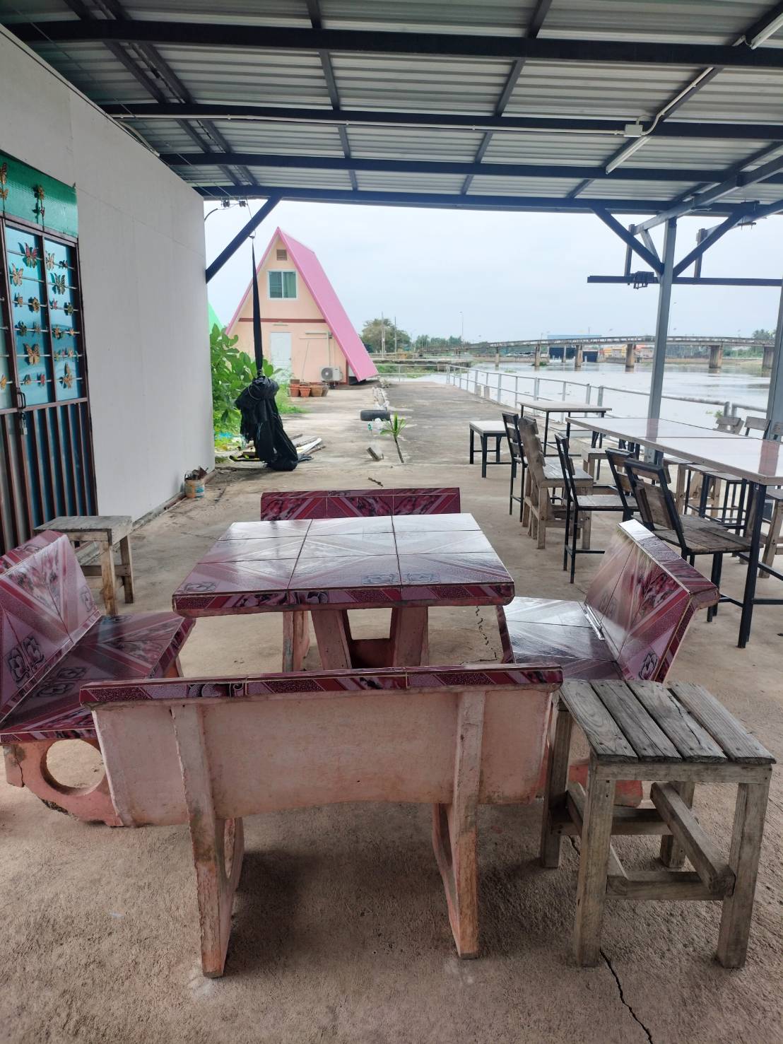 มีที่จอดรถ นั่งกินริมน้ำ ฝั่งตรงข้ามคือวัดปากลัด