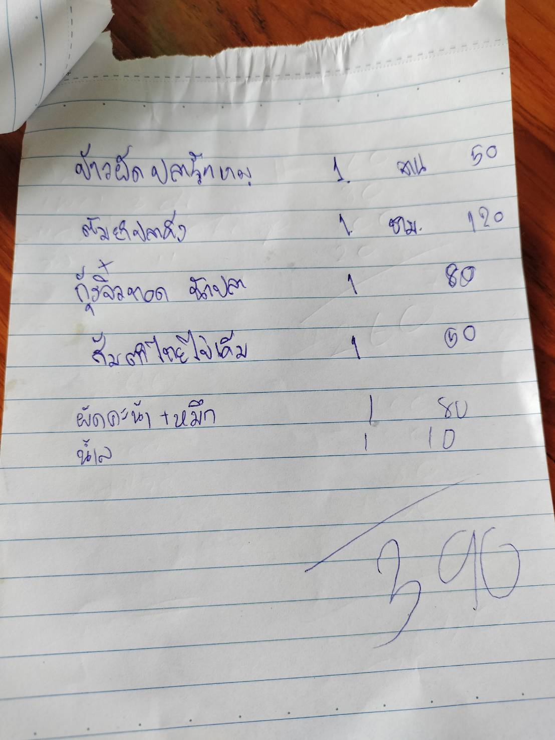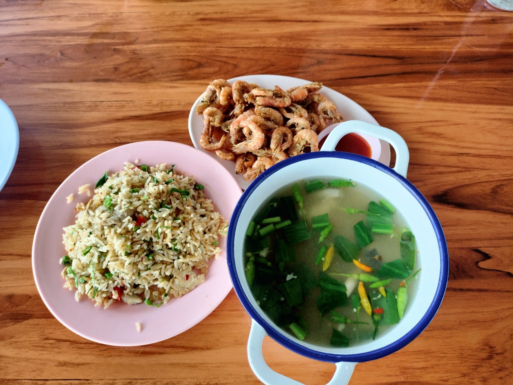 ราคาอาหารก็ไม่แรง เราสองคนเลือกต้มยำปลาคัง,ส้มตำไทยไข่เค็ม,ผัดคะน้าปลาหมึก,กุ้งจิ๋วทอด