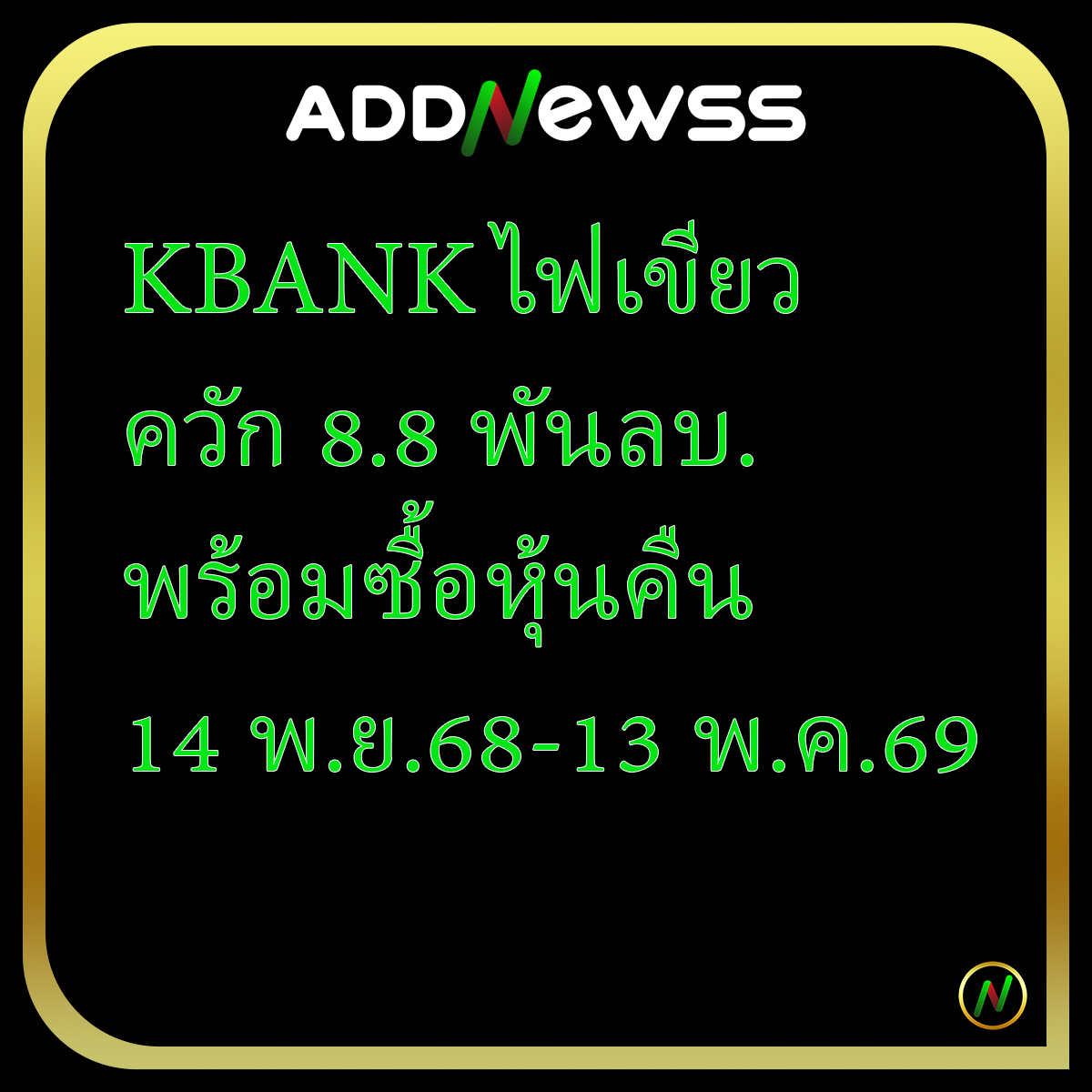 KBANK ไฟเขียวควัก 8.8 พันลบ.พร้อมซื้อหุ้นคืน 14 พ.ย.68-13 พ.ค.69