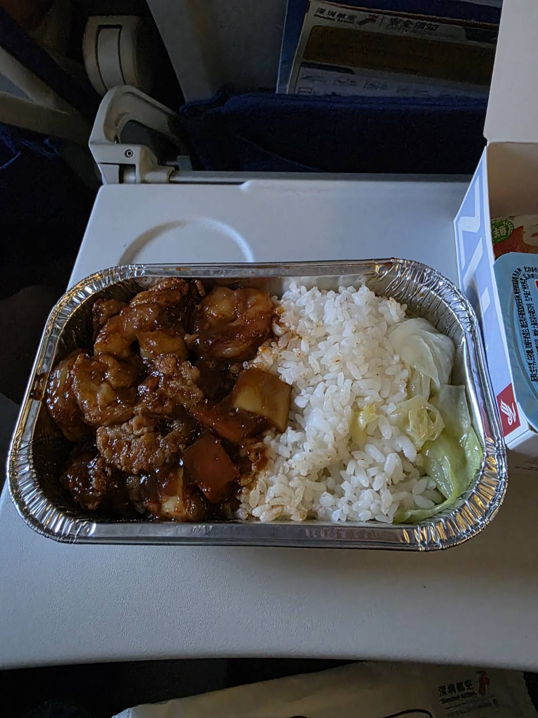 บนเครื่องมีเสิร์ฟอาหารให้เลือกค่ะ เราเลือกเป็น ซีฟู้ดรสหมาล่า 🌶️