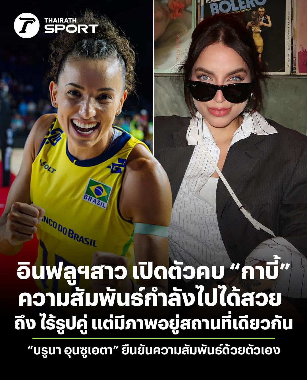 💞“กาบี้” กัปตันและดาวตบวอลเลย์บอลหญิงทีมชาติบราซิล ยืนยันความสัมพันธ์กับ “บรูน่า อุนซูเอต้า“ อินฟลูเอนเซอร์และอดีตพิธีกรพอดแคสต์ ชาวบราซิล วัย 32 ปี โดยทั้งสองฝ่ายยืนยันผ่านทีมงานว่าคบกันมาได้ประมาณ 2 เดือนและกำลังอยู่ในช่วง “อินเลิฟ”