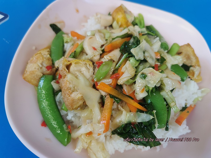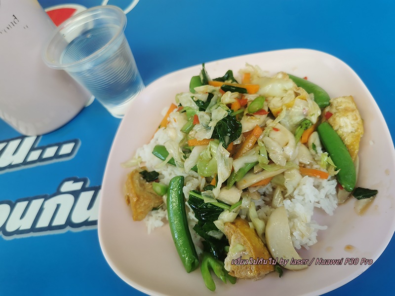 สั่งผักกระเฉดผัดเต้าหู้ราดข้าว แต่ผักกระเฉดหมด เปลี่ยนเป็นผัดผักรวมมิตรราดข้าว 50 บาท น้ำฟรี