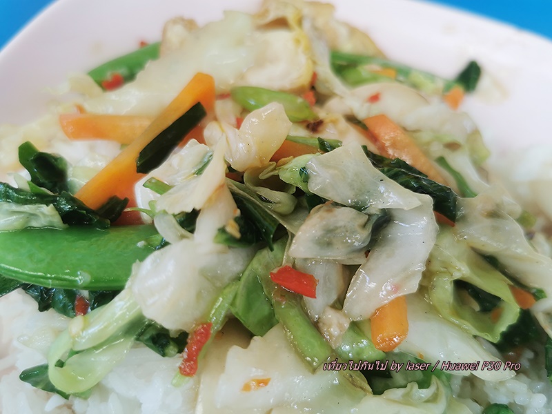 สั่งแบบใส่พริกสับเล็กน้อยเพิ่มรส ปริมาณมากทั้งผัดผักและข้าวสวย
