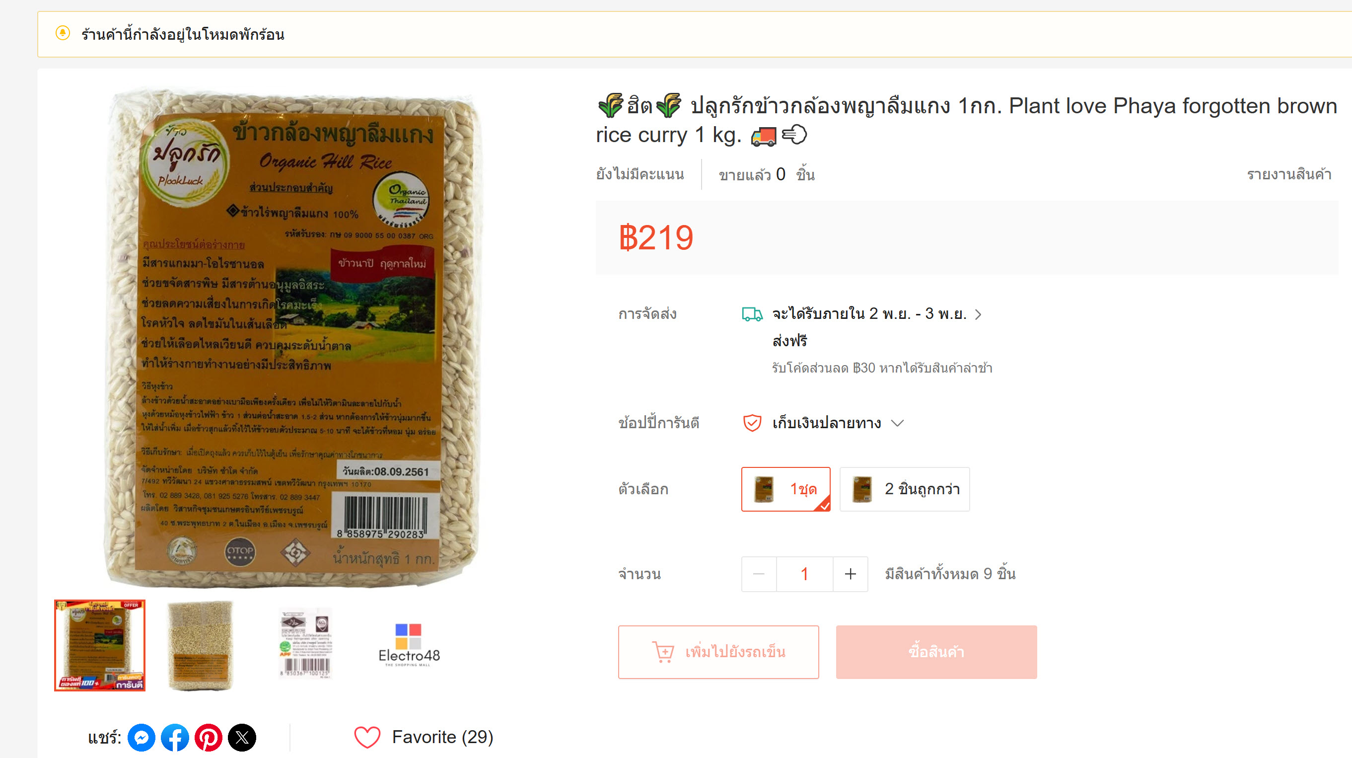 กลับมาพยายามหาสั่ง Online แต่ว่า เจอสองสามแห่งหมดสต๊อค ราคาประมาณกิโลละ 210-240 แพงกว่า ข้าวหอมมะลิปกติที่ขายกันราวๆ กก.ล่ะ 35-40 บาท