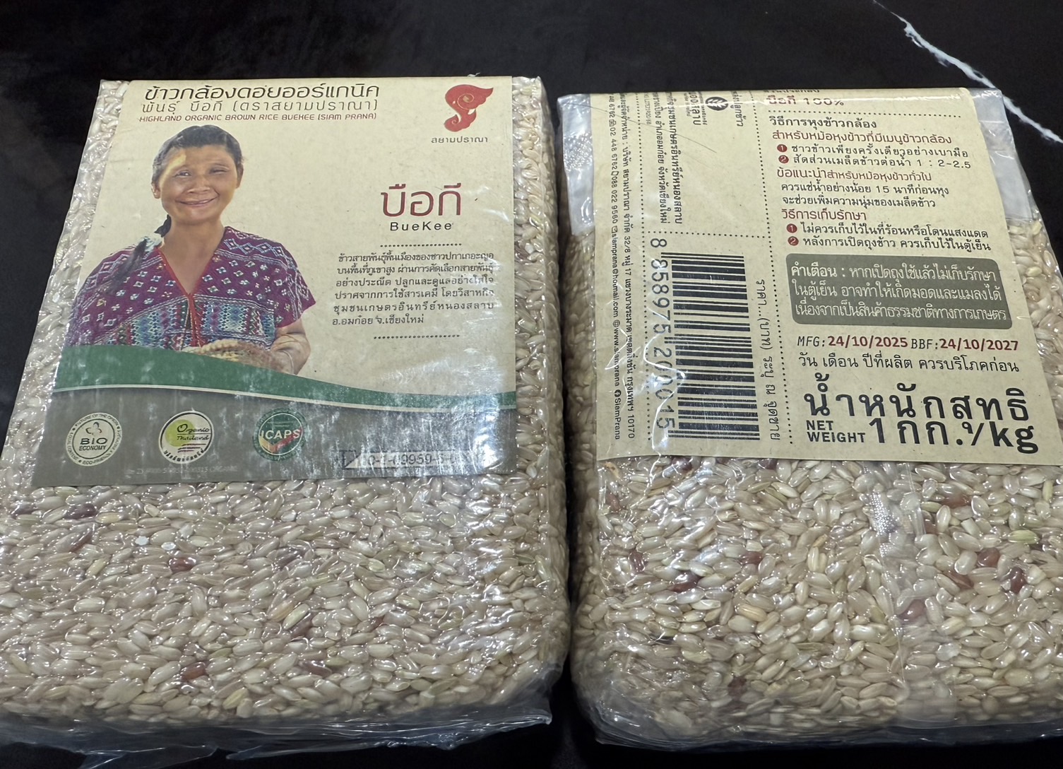 แต่วันก่อนเห็นจ่าพิชิต แชร์ข้าว บือกี ข้าวไร่ ของชาว ปะกากะยอทางเหนือ ดูทรง คล้ายแนวเดียวกัน ราคา กก. ล่ะ 135 เลยลองสั่งมาหุงกิน 3 โล