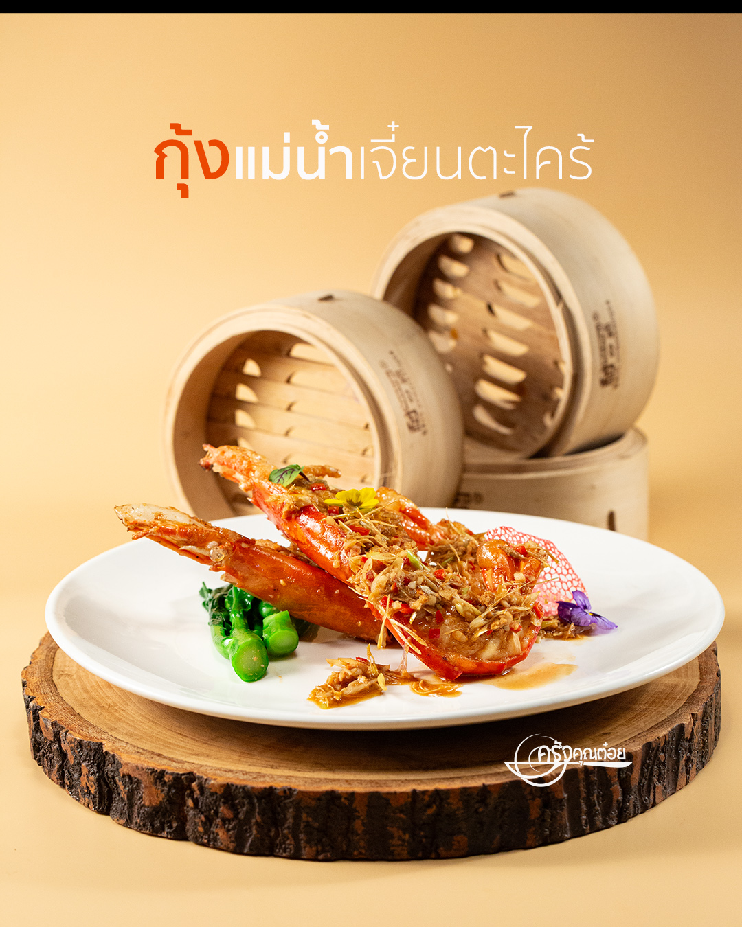 กุ้งแม่น้ำเจี๋ยนตะไคร้ ห้องอาหารจีน ดิ เอ็มเพอเรอร์ ร.ร.มณเทียรริเวอร์ไซด์