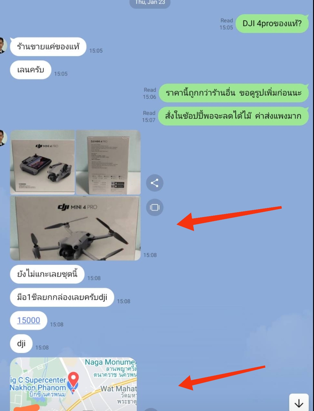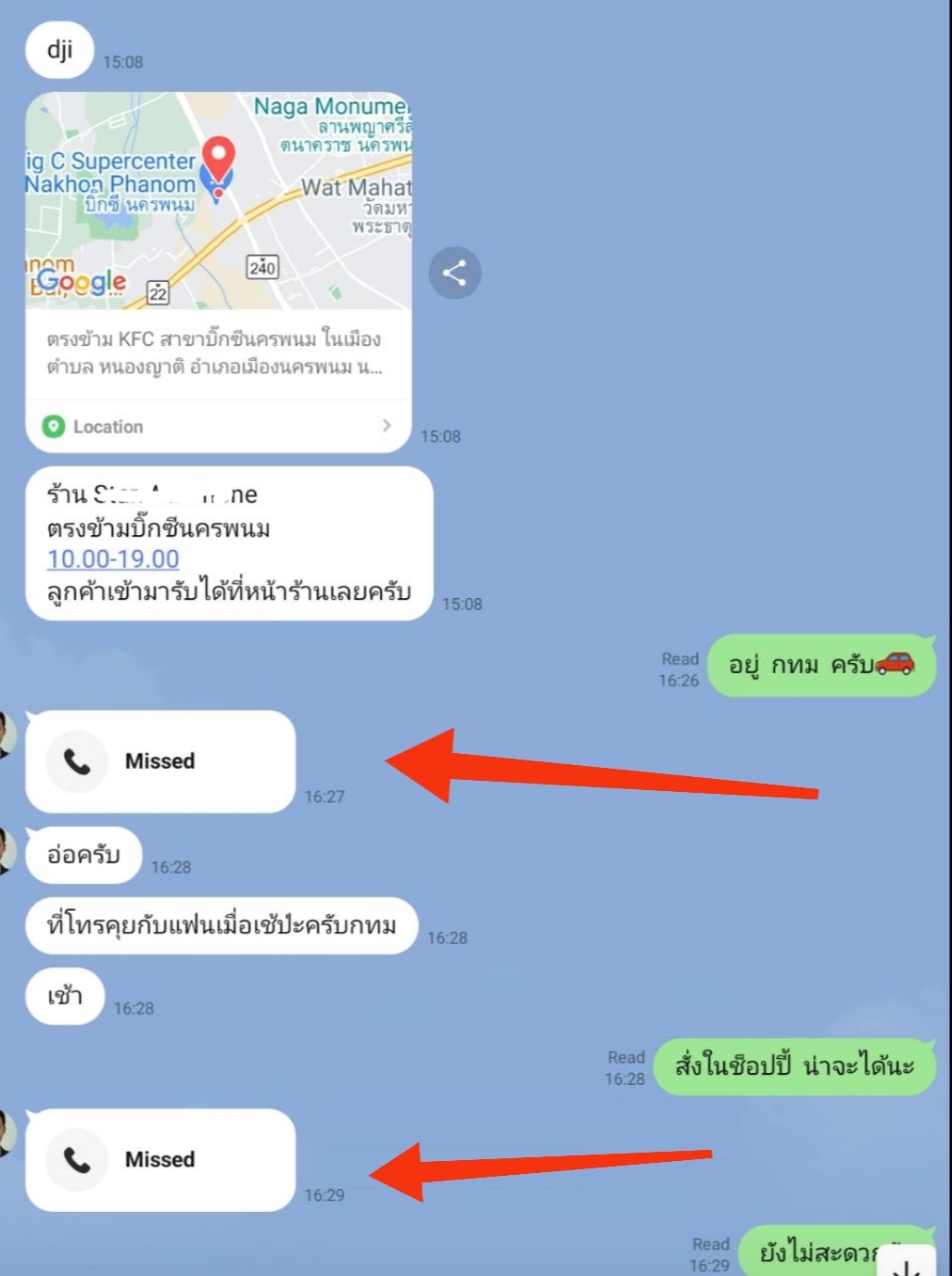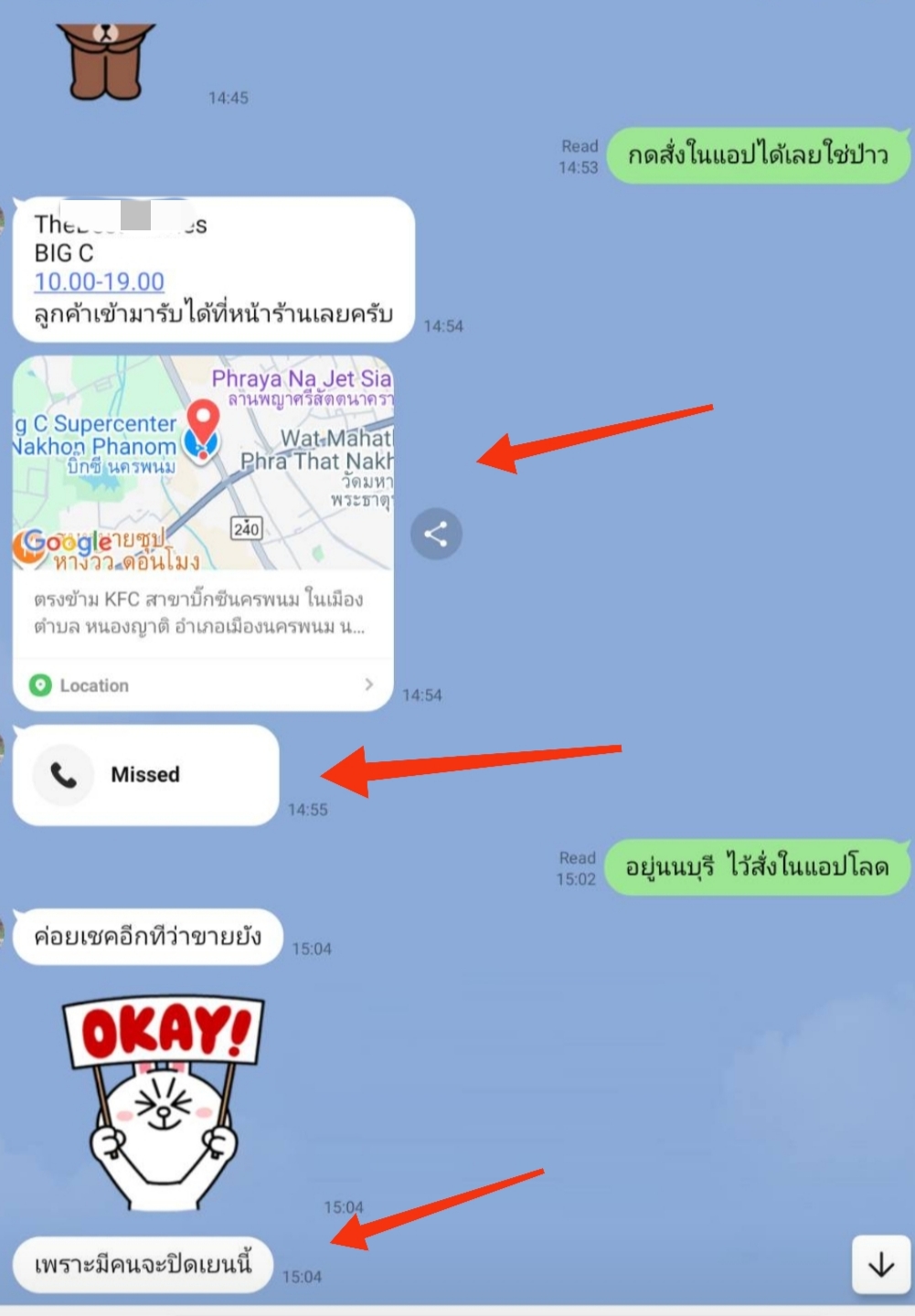 - ตามด้วย location big c นครพนม ทันที เพื่อให้เหยื่อหลงเชื่อว่ามีหน้าร้านจริง และท้าให้มารับหน้าร้าน(ซึ่ง99.99% คงไม่ไปนครพนม)