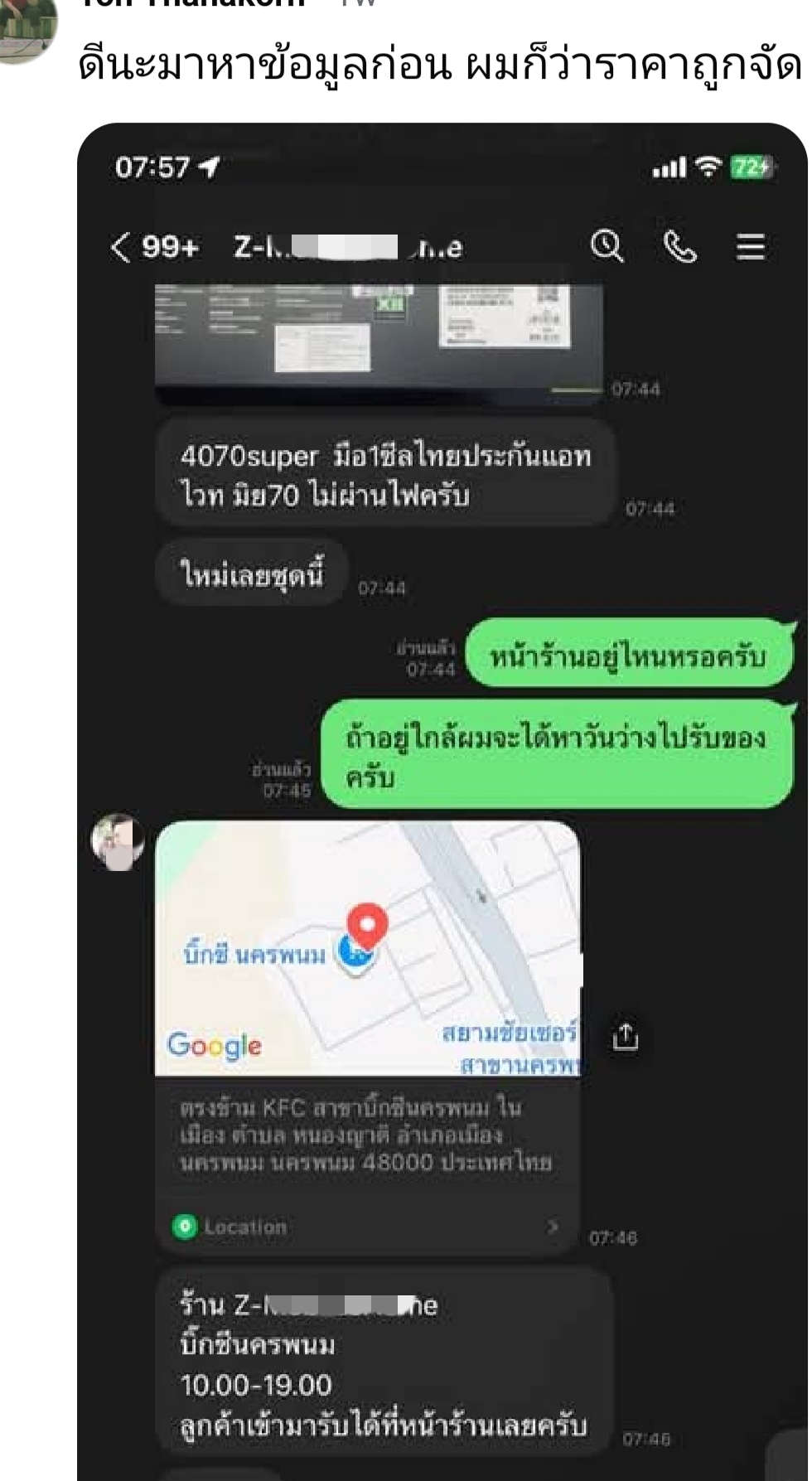 แต่กลับท้า ให้ไปจ่ายที่ร้าน ที่นครพนม ซึ่ง 99.99% ไม่มีใครไปแน่นอน