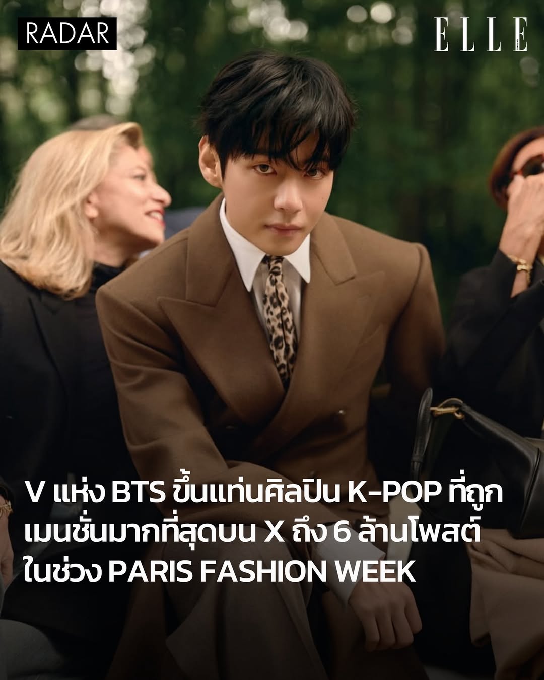 V แห่ง BTS ขึ้นแท่นศิลปิน K-pop ที่ถูกเมนชั่นมากที่สุดบน X ถึง 6 ล้านโพสต์ในช่วง Paris Fashion Week
