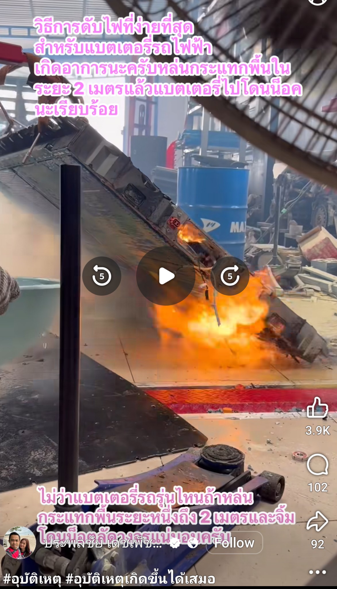 แบตEV ไฟไหม้คาอู่ ช่างมีสติดีดับได้