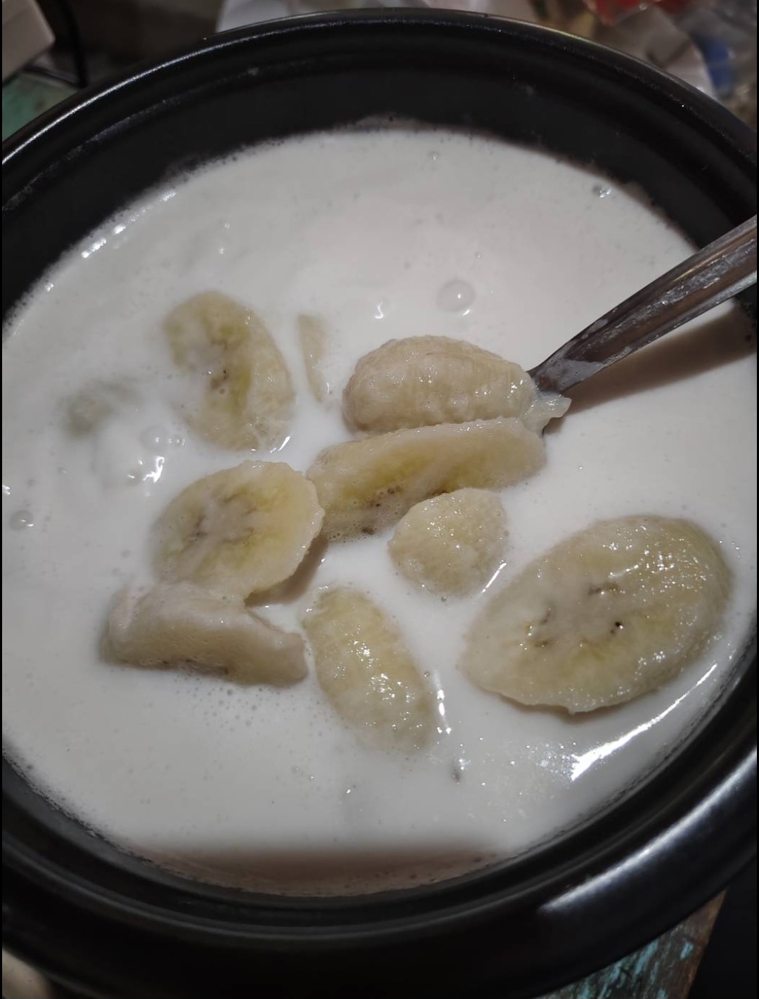 เสร็จเรียบร้อย กล้วยบวชชีที่เพิ่งหัดทำด้วยหม้อไฟฟ้า ออกมารสชาติดีเลยค่ะ