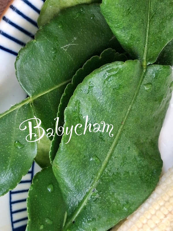 ใบมะกรูด ฉีกหน่อยนะคะ 1 คน 1 ถ้วย ใส่สัก 4 ใบ ก็พอ ใส่เยอะเกินจะกลบกลิ่นชะอมซะป่าวๆ