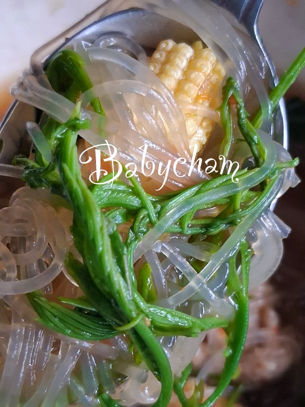 ใส่วุ้นเส้นลงไปค่ะ ชิมรสน้ำแกงได้นะคะ ชอบเค็มเติมเกลือ/น้ำปลา (หรือใครอยากใส่น้ำปลาร้าก็ได้นะ) ชอบเผ็ดเติมพริก แม่เปปไม่เติมน้ำตาลนะคะ แกงนี้ไม่ต้องการหวานน้ำตาล ผักที่ใส่ลงไป หวานกลมกล่อมแล้ว