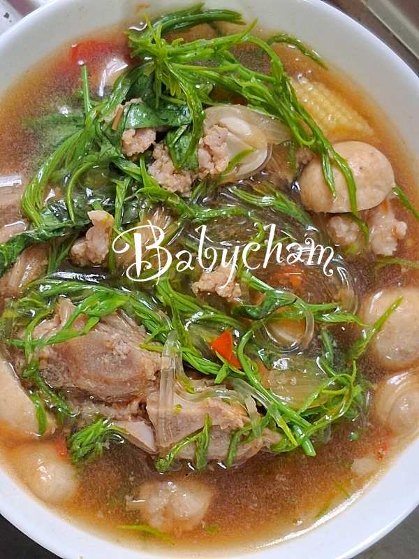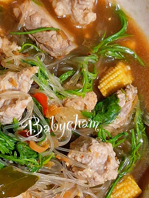 แกงวุ้นเส้นชะอม+ซี่โครง+หมูสับ อาหารแซ่บคนออกเจ