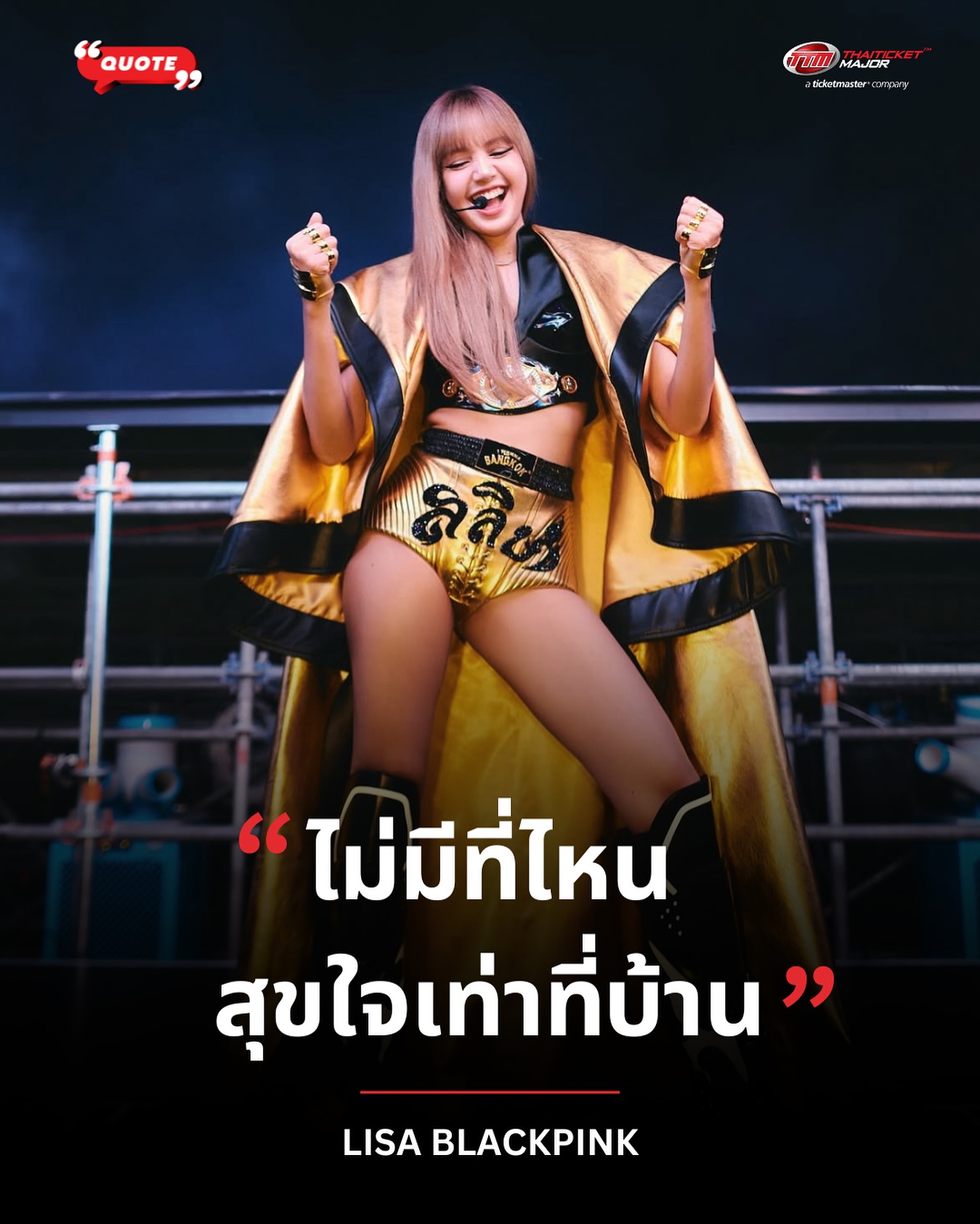 🔴โดยล่าสุด ลิซ่าโพสต์ภาพของเธอเองในคอนเสิร์ต ‘BLACKPINK WORLD TOUR <DEADLINE> IN BANGKOK’ ได้เขียนข้อความเป็นภาษาไทยว่า “ขอบคุณทุกคนที่มาสร้างความทรงจำดีๆด้วยกันทั้งสาม วันเลยนะคะ ขอบคุณที่ยังรักพวกเราไม่เปลี่ยน แล้วไว้เจอกันใหม่ค่ะ รักสุดหัวใจเลยคับ” พร้อมปิดท้ายด้วยประโยคภาษาอังกฤษ No place like home แปลว่า “ไม่มีที่ไหนสุขใจเท่าที่บ้าน” ซึ่งเป็นสำนวนที่ใช้แสดงความรู้สึกดีใจที่ได้กลับบ้าน หรือหมายถึงว่าบ้านคือที่ที่ดีที่สุดสำหรับเรา