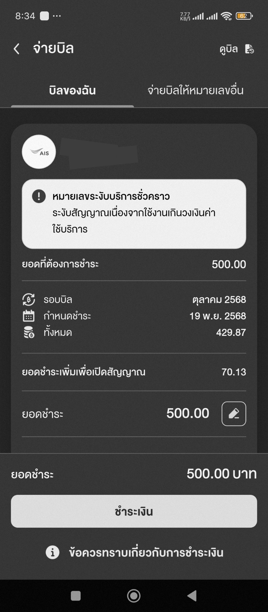 ทำไมมีค่าเปิดสัญญาณด้วยครับ ตอนแรกมีบิล879บาท(ที่ปิดสัญญาณเข้าใจได้เพราะวงเงินแค่800บิลมันเกินวงเงิน) ไม่ได้มีค่าเปิดสัญญาณ พอจ่ายเดือนที่แล้วไป เหลือเดือนนี้ถึงเดือนหน้าเลยเลือกที่ยังไม่จ่ายเพราะยังมีเวลา1เดือนเต็ม พอจ่ายของเดือนก่อนถึงเดิอนนี้ มันดันมีค่าเปิดสัญญาณขึ้นมา100พอจ่ายไปมันก็ขึ้นมา20เลยจ่ายซ้ำไปอีก มันก็ขึ้นมา70 ที่เห็นก็ตามรูปเลยครับ ดูจากเวลาซ้ายบนได้ว่ามันเพิ่มค่าเปิดสัญญาณจาก20เป็น70
