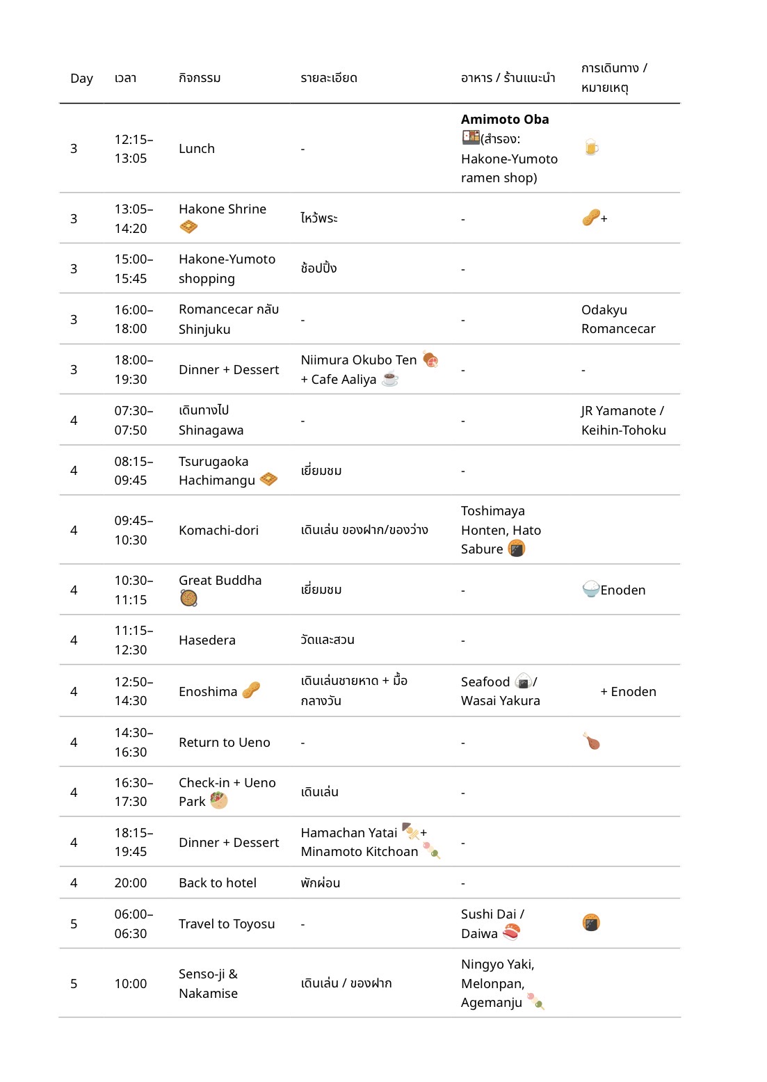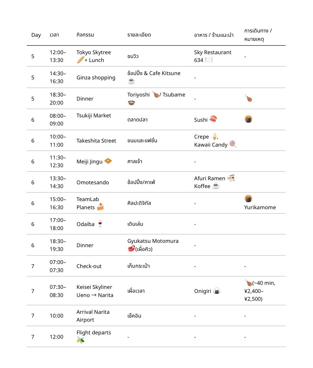 พอดีไปtokyo7day 6night ลองทำตารางเองรบกวนพี่ๆช่วยดูให้ได้ไหมว่าควรปรับแก้จุดไหนครับ
