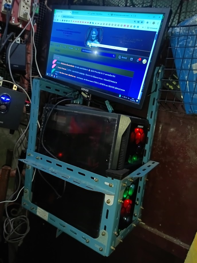 พื้นที่มีน้อย ใช้สอยให้คุ้มค่า ตัวแขวนPC ทำด้วยเหล็กฉากรู
