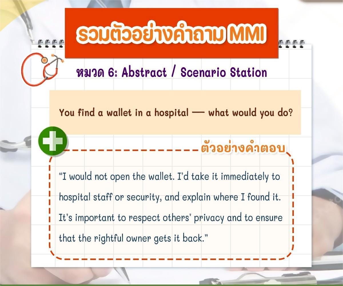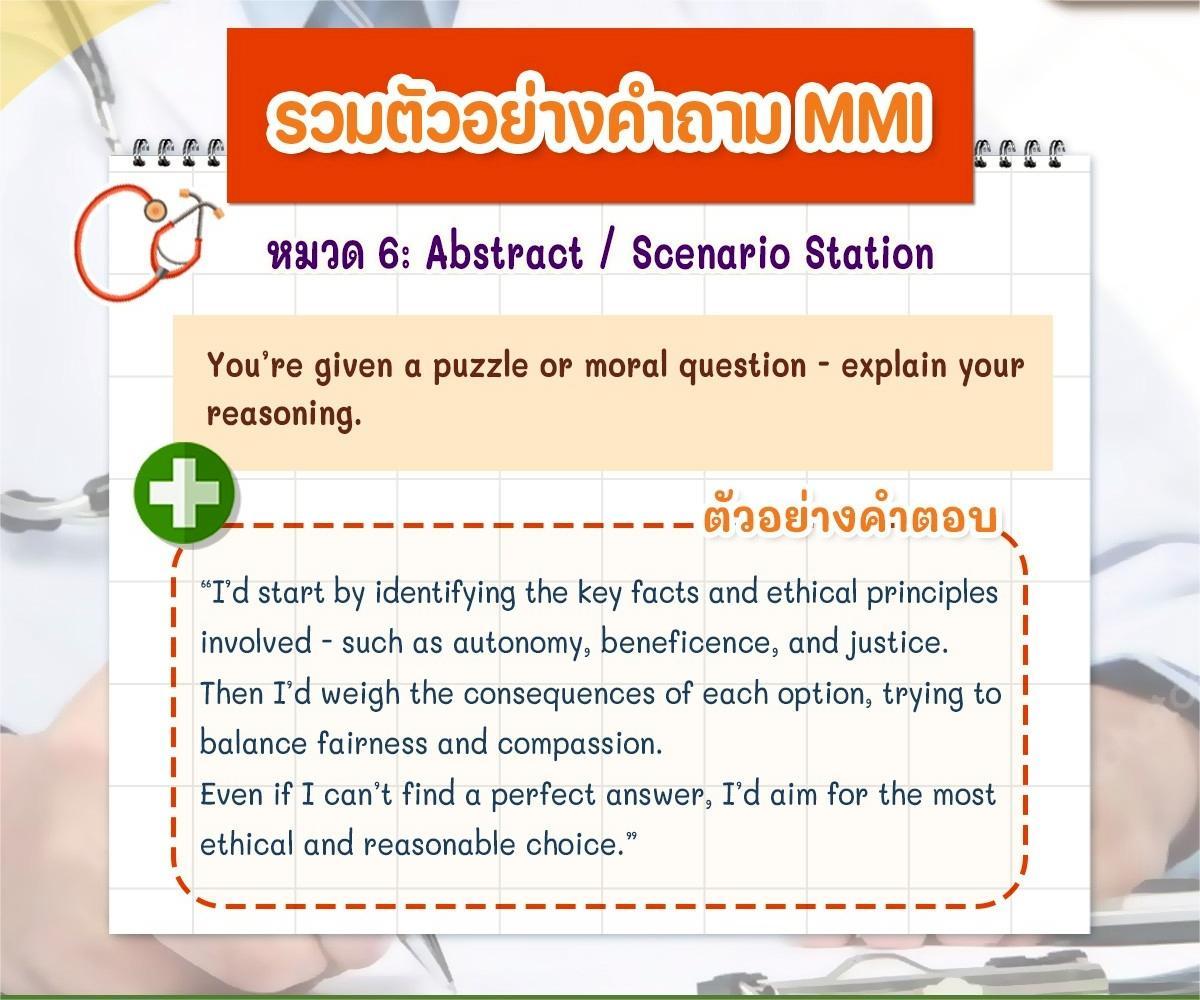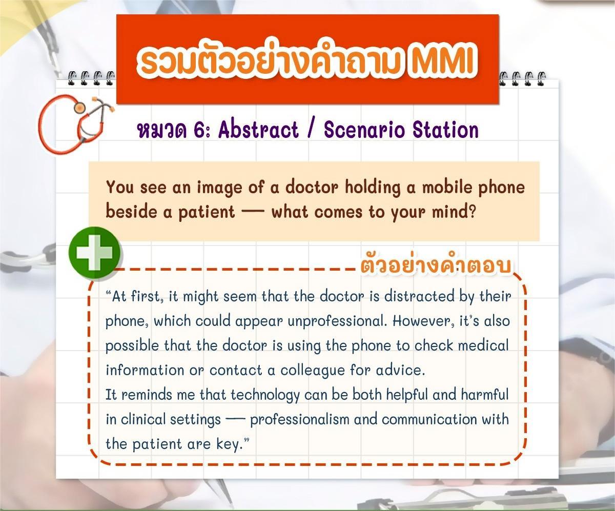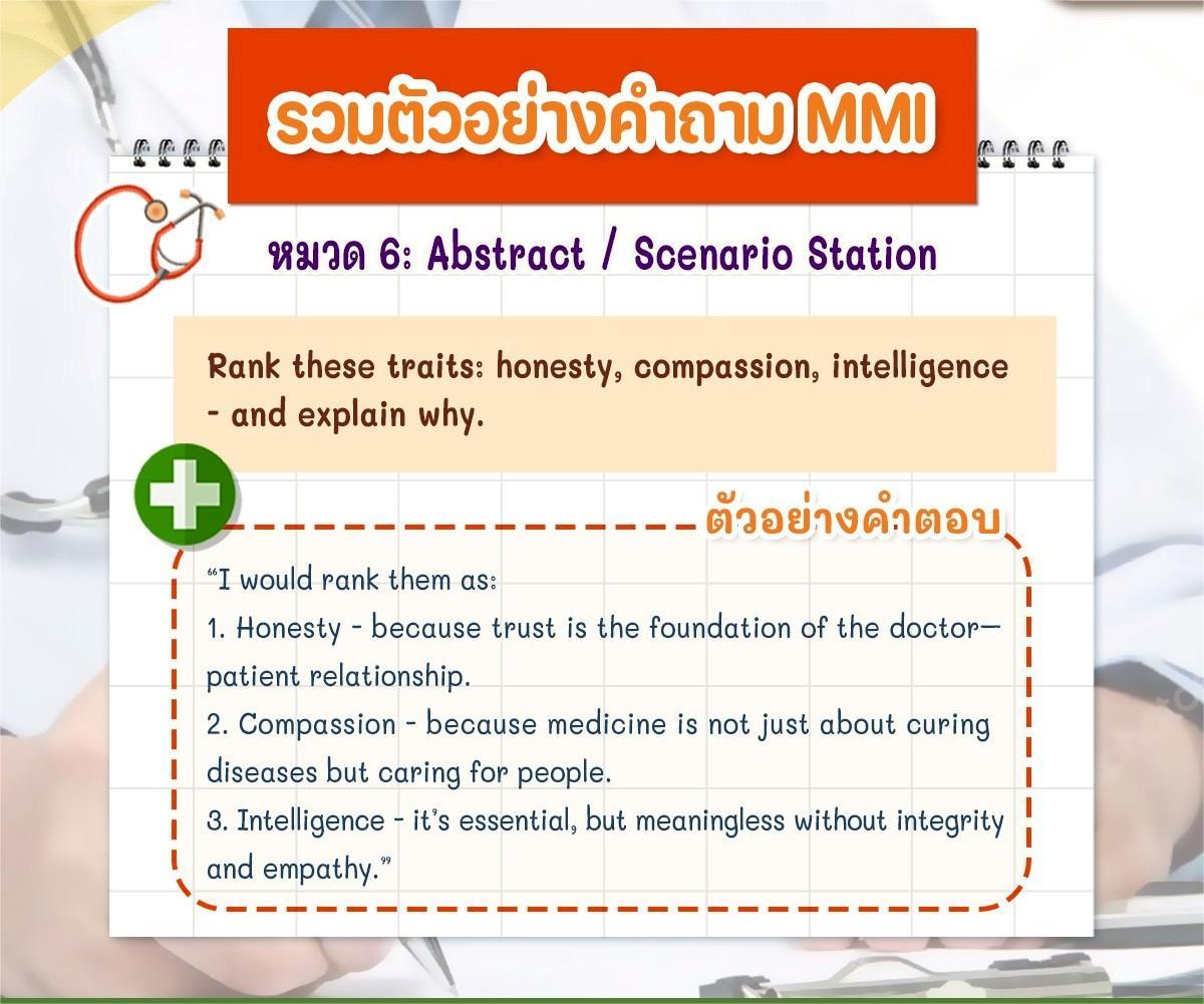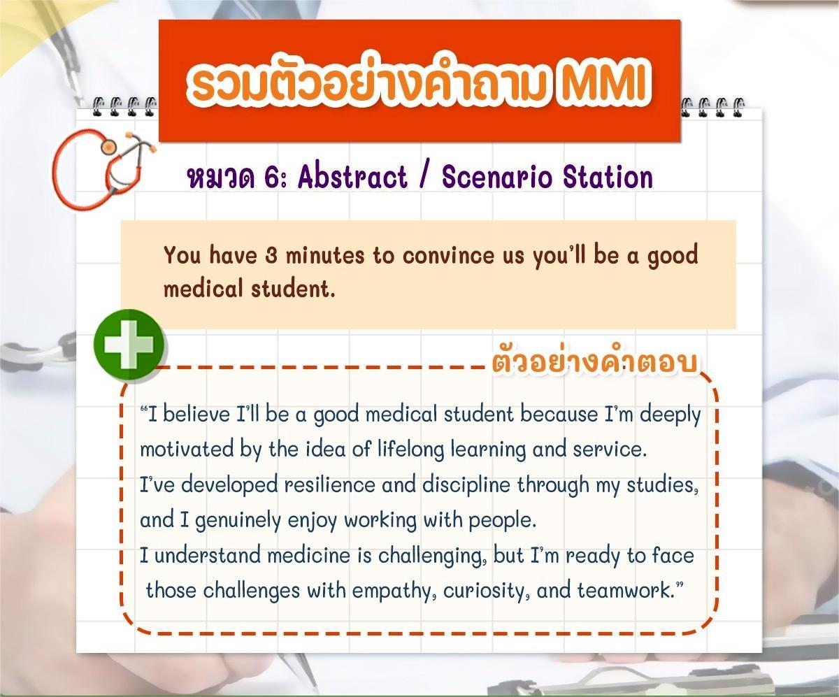 ใครมีประสบการณ์สอบ MMI หรือแนวคิดในการตอบคำถามแนวนี้ มาแชร์กันได้เลยนะครับ เผื่อช่วยเพื่อน ๆ ที่กำลังเตรียมสอบรอบสัมภาษณ์แพทย์อินเตอร์ปีนี้