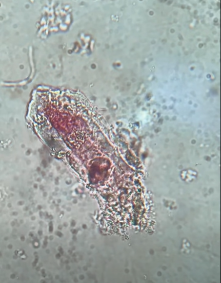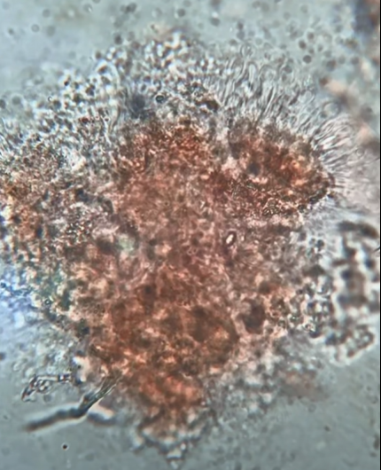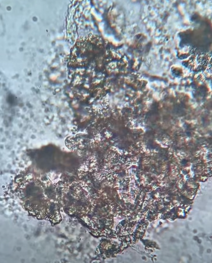 - จากการส่องกล้อง ก็จะพบ เกลือ และแบคทีเรีย ส่วนสีขาวๆบนตัวปลาหมึกนั่นคือเกลือ จ้า