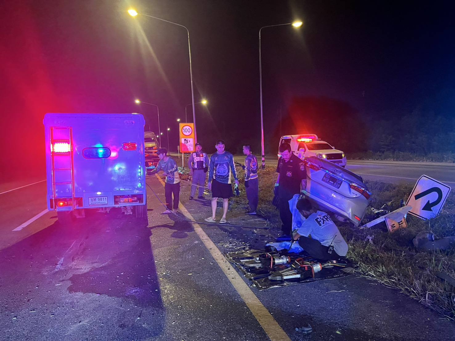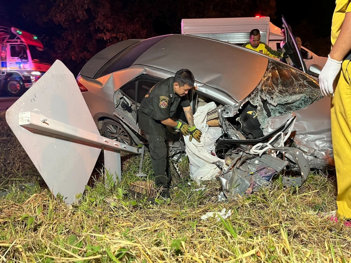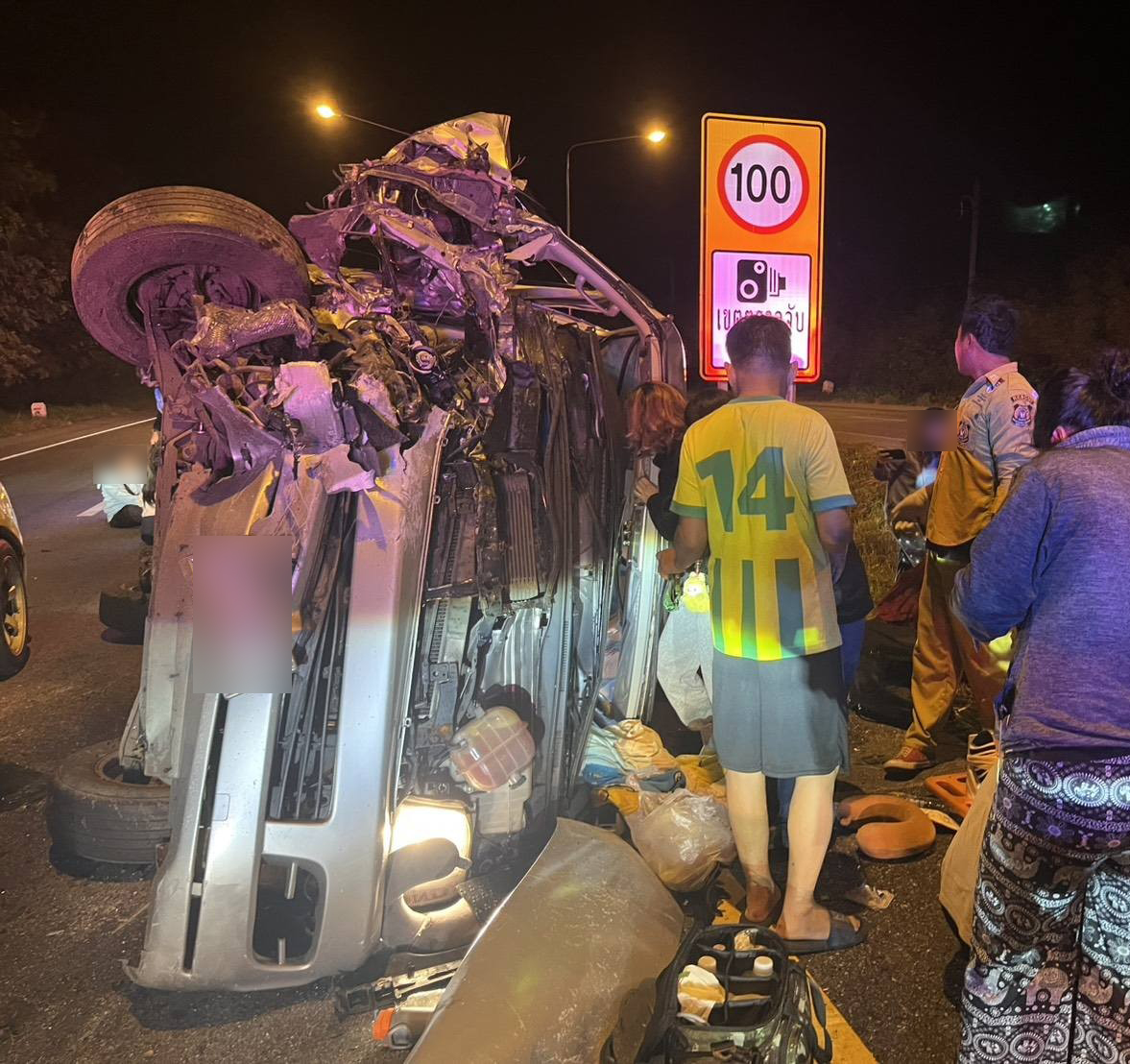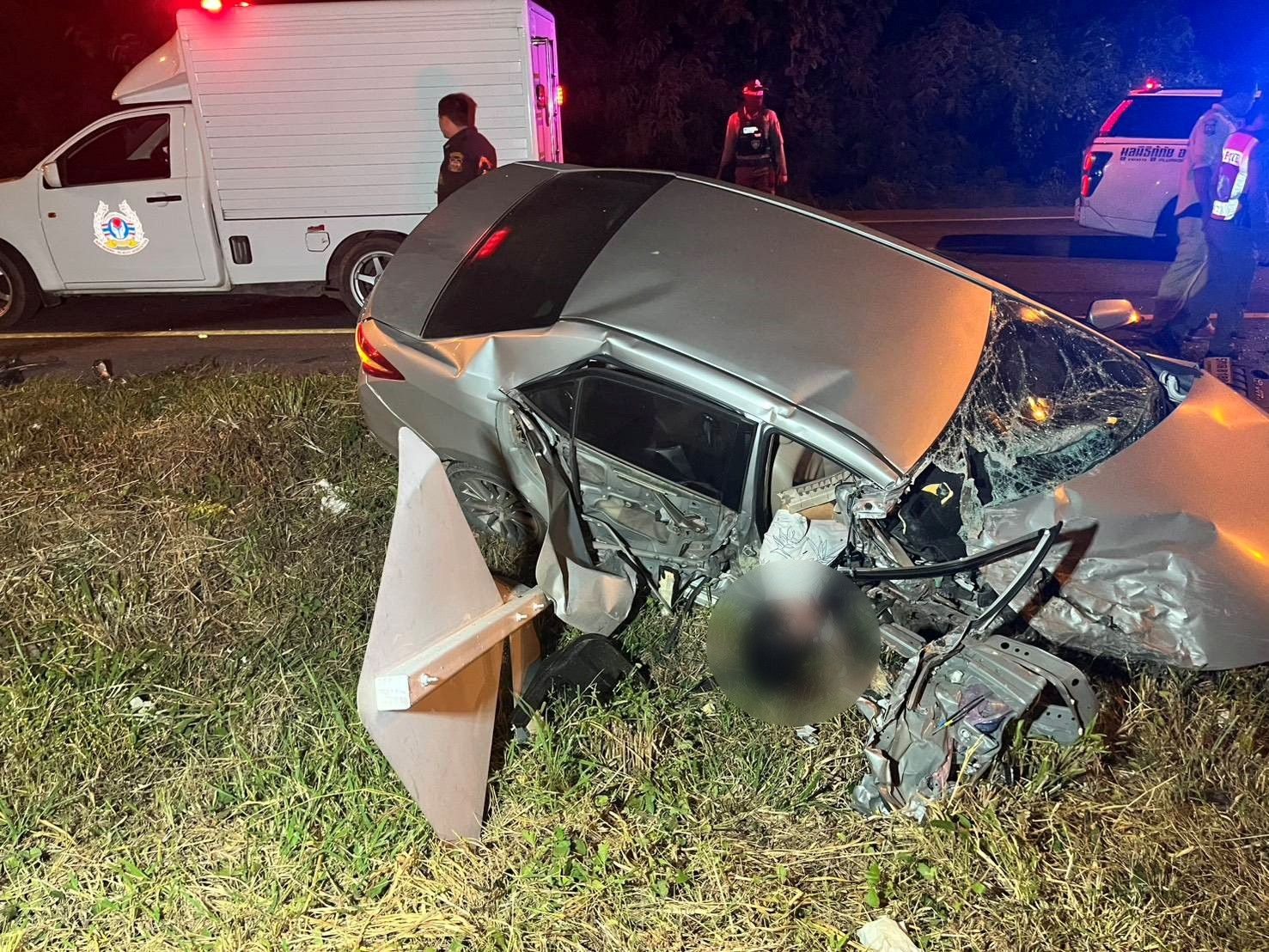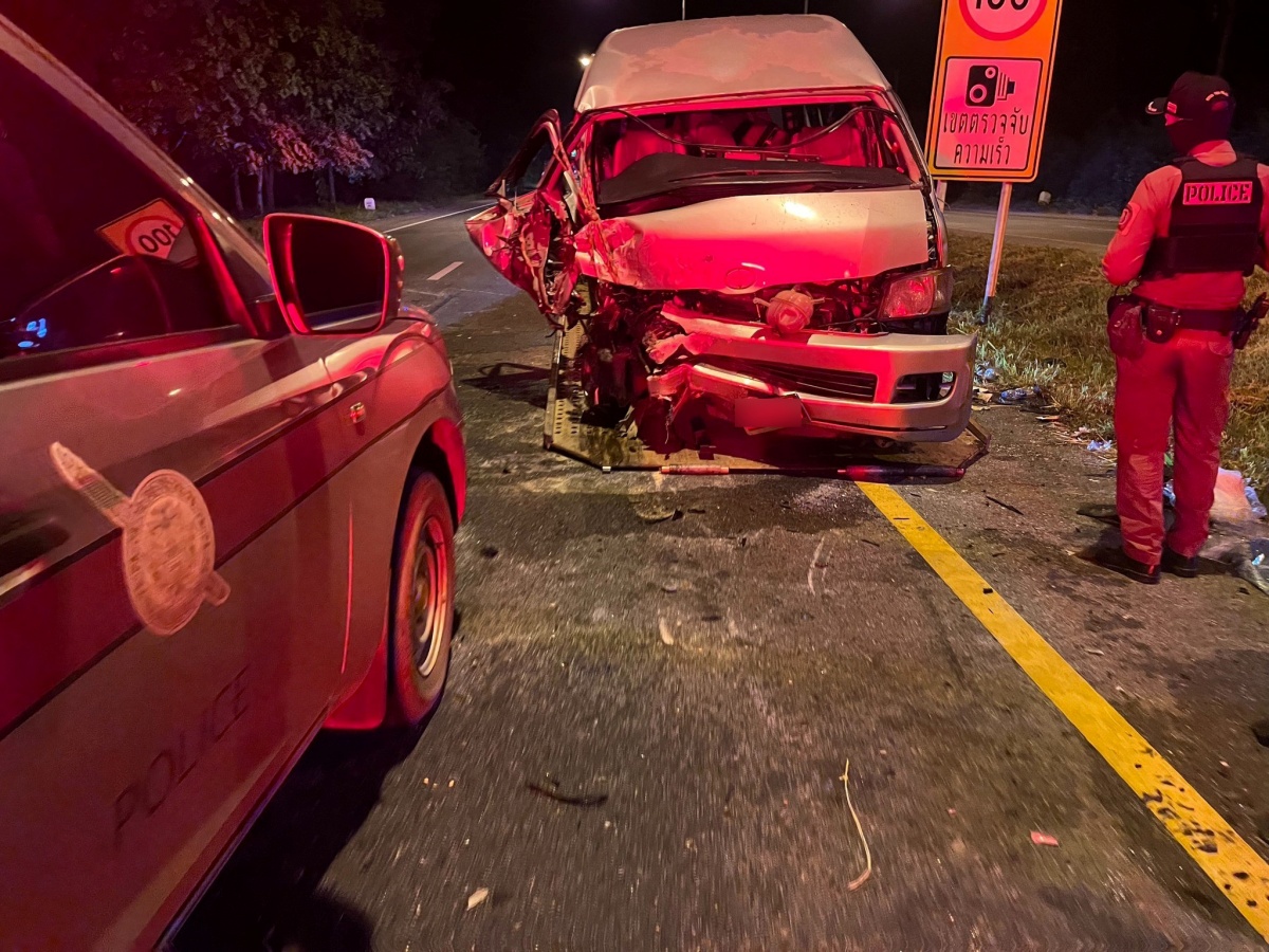 เบาได้ไม่เบากัน! รถเก๋งกับรถตู้ชนกัน ที่จุดเตือนลดความเร็ว คนขับเก๋งตายคาที่