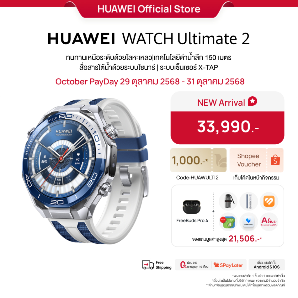 ⌚️💓 HUAWEI WATCH Ultimate 2 eSIM กันน้ำ 20 ATM ดำน้ำ 150 เมตร จอ 1.5” 3500 nits ทนทานโลหะเหลว 🏃🏊