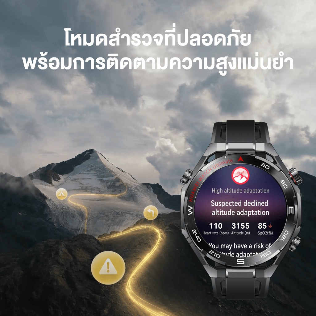 HUAWEI WATCH Ultimate 2 สมาร์ตวอทช์เรือธงสำหรับสายลุย ตัวเรือน 48.5 มม. จอ LTPO AMOLED 1.5” สว่างสูงสุด 3500 nits เห็นชัดกลางแดด ใช้ eSIM โทรได้จากข้อมือ รองรับ Wi-Fi 6 และ GPS ความแม่นยำสูง กันน้ำระดับ 20 ATM พร้อมมาตรฐาน IP68 และ IP69 ชาร์จไร้สาย เติมพลัง ≤90 นาที วัสดุโลหะเหลวกับเซรามิกแน่นหนา ใส่เที่ยว ดำน้ำ หรือออกกำลังกายก็พร้อมไปด้วยทุกวัน ⌚️