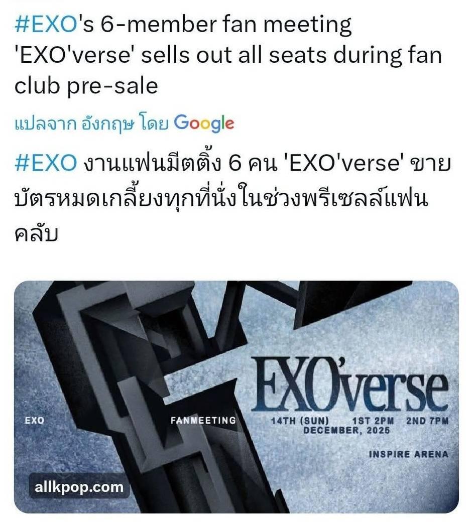 EXO คัมแบค!! เตรียมจัดงานแฟนมีตติ้งในวันที่ 13-14 ธันวาคมและปล่อยอัลบั้มใหม่ในต้นปีหน้า 🎉