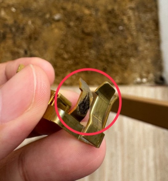 เราเลยเปิดงานเดิมซ้ำเข้าไป และแจ้งปัญหาค่ะ รอบนี้ถึงได้เข้ามาแล้วตรวจสอบเต้ารับให้ เจอว่าปัญหาคือเต้ารับสั้นเกินไป และตัวทองเหลืองภายในมีปัญหา เลยทำให้เต้าหลวม เลยเกิดสปาร์คจนทำให้ปลั๊กหลอม
