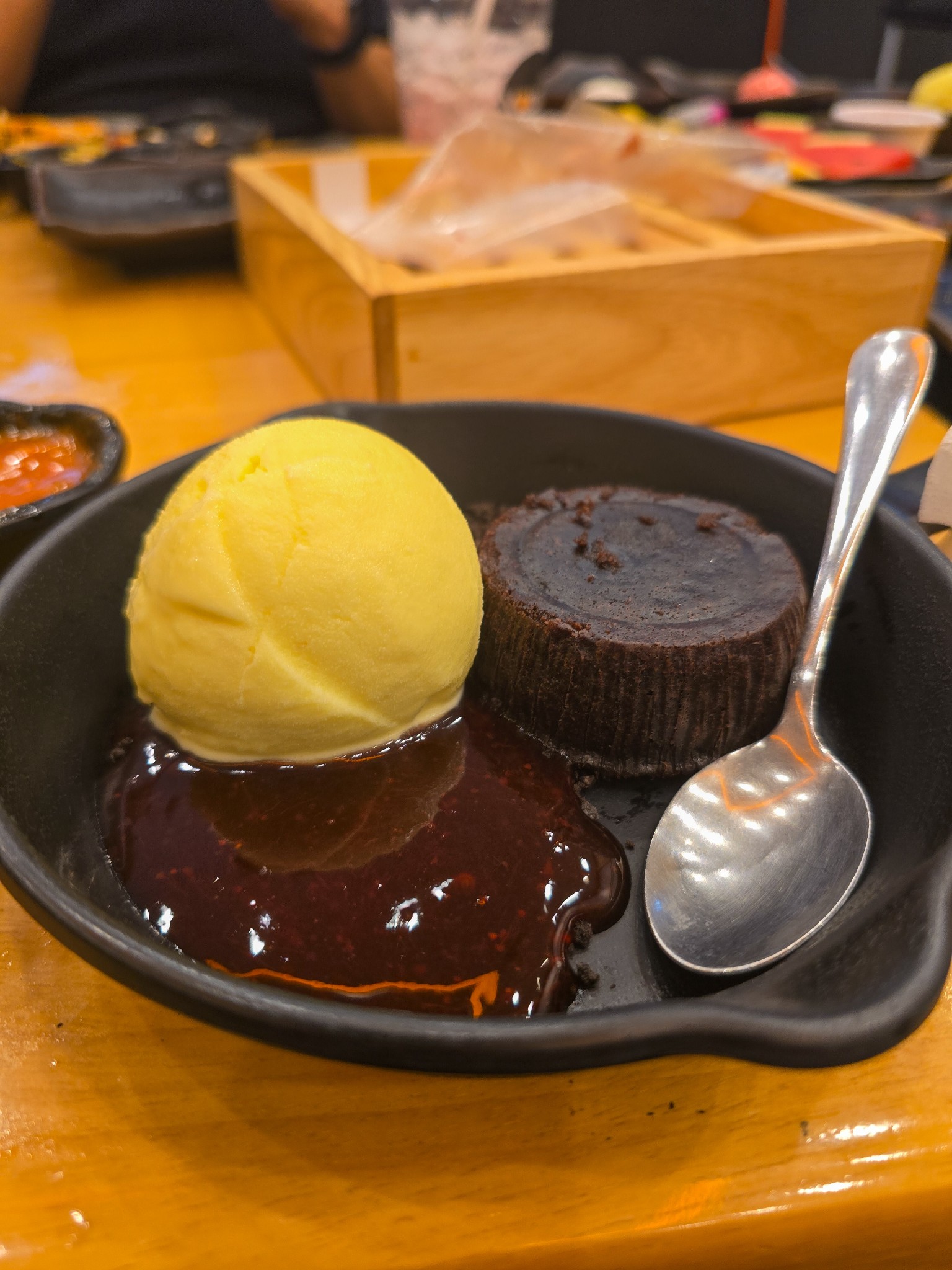 ช็อกโกแลตลาวา: เมนูนี้ต้องสั่งกับพนักงานเหมือนกันครับ วันนี้มา 2 จานไม่พร้อมกัน จานแรก Overcooked เนื้อเค้กแข็ง สุกไปเลยครับ แต่โชคดีที่ จานที่ 2 กลับมาเป็นลาวาเยิ้มสวยงามตามแบบฉบับที่ควรจะเป็นครับ