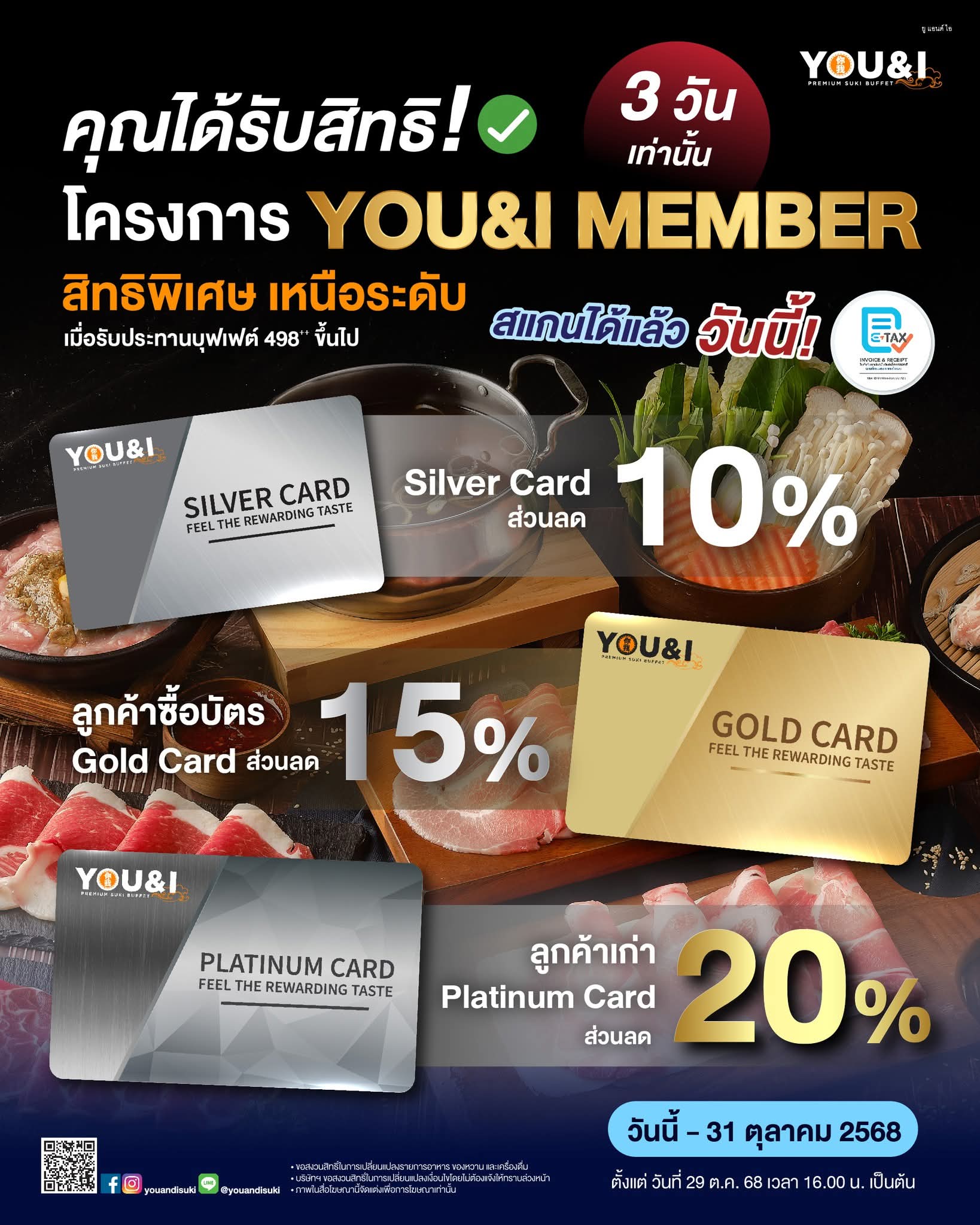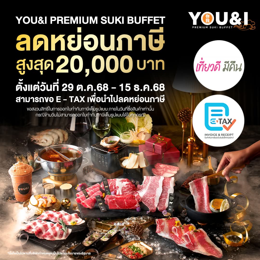ไม่ได้เข้ามากิน You&i Premium Suki นานมาก ๆ เป็นปีเลยครับ! พอดีช่วงนี้เข้าทางโปรโมชั่นสุด ๆ ทั้ง โปรลด 20% สำหรับสมาชิก Platinum Card (29 - 31 ต.ค. 68) และยังอยู่ในช่วงมาตรการรัฐอย่าง "เที่ยวดี มีคืน" ที่ร้านออก e-tax invoice ให้ได้ทันที เลยถือโอกาสมาจัดหนักซะหน่อยที่ Central Westgate ครับ