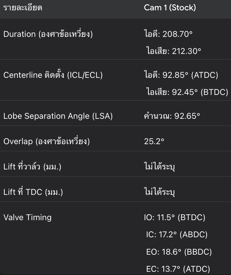 ฉะนั้น ผมอยากทราบว่า หากสเปกของแคมชาร์ฟเดิมจากโรงงานเป็นแบบนี้