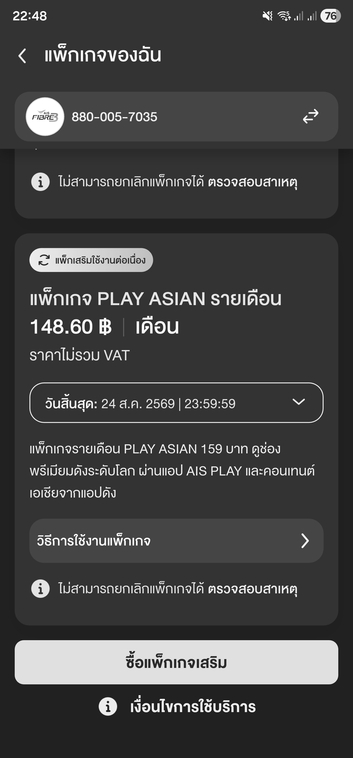 ทำไมยกเลิกแพ็คเกจ PLAY ASIAN ของ AIS ไม่ได้
