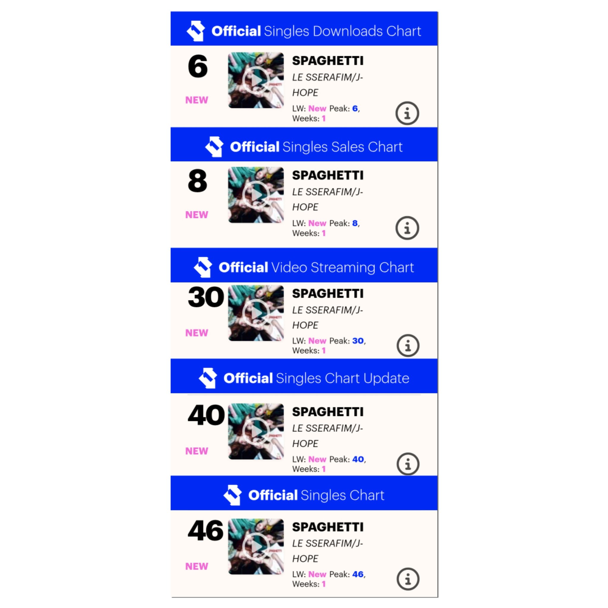LE SSERAFIM 🍝 SPAGHETTI (Feat. j-hope) เดบิ้วต์ที่อันดับ #46 บน UK Official Singles Charts 🎉