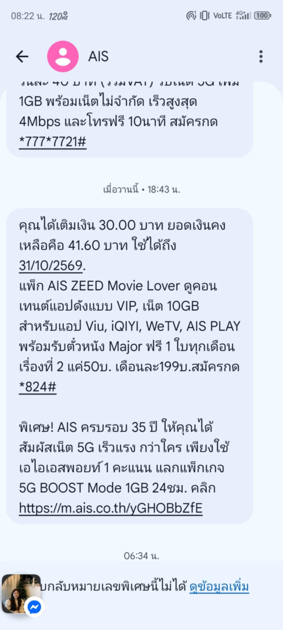 ล่าสุดเมื่อวาน31/10/68 เติมเงินไป30บาท ยอดเงินเหลือ 41.60บาท โดนหักไป25บาท เหลือ16บาท ตอนเช้ามาเงินหายหมด เติมเงินเข้า50บาท แต่ยังไม่โดนหัก ตามภาพเลย อยากทราบที่ไปที่มาของการโดนหไผทำไมไม่มีข้อความบอก