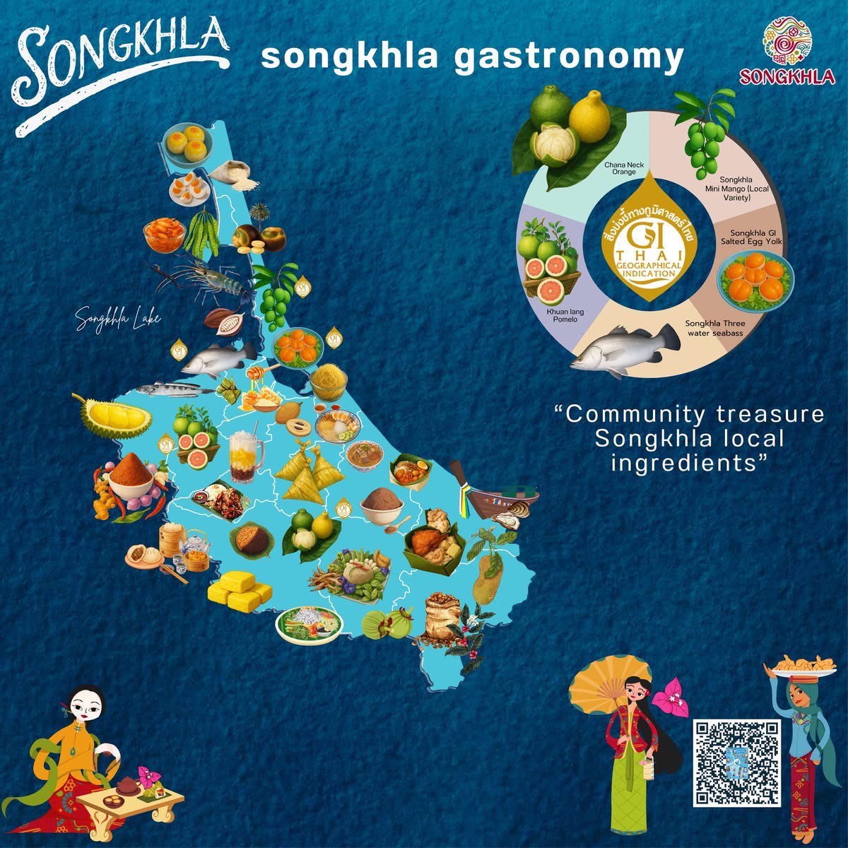 ส่วน “จังหวัดสงขลา” ได้นำเสนอข้อมูลในสาขาอาหาร (Gastronomy) โดยเสนอความโดดเด่น คือ เป็นเมือง 2 ทะเล มีทั้งทะเลสาบสงขลา 3 น้ำ คือ น้ำจืด น้ำกร่อย และน้ำเค็ม และทะเลฝั่งอ่าวไทย มีภูมินิเวศแบบโหนด-นา-เล คือ ต้นตาล ท้องนา และทะเล เป็นอู่ข้าวอู่น้ำ ก่อให้เกิดวัตถุดิบในการทำอาหารที่หลากหลาย ทำให้กลายเป็นอัตลักษณ์เฉพาะของเมืองสงขลาจนถึงปัจจุบัน และมีกิจกรรมทางวัฒนธรรมที่หลากหลายมีศักยภาพและมีความโดดเด่นในการขับเคลื่อนเมือง