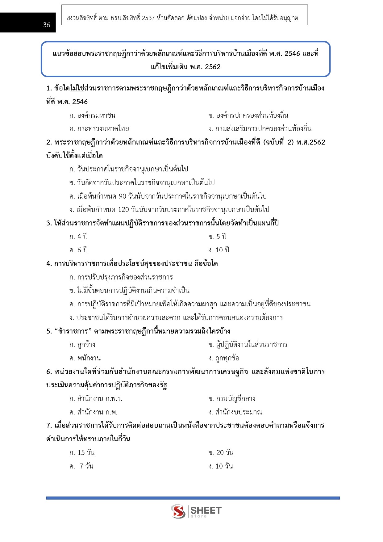 – แนวข้อสอบพระราชกฤษฎีกาว่าด้วยหลักเกณฑ์และวิธีการบริหารกิจการบ้านเมืองที่ดี พ.ศ. 2546 และที่แก้ไขเพิ่มเติมถึง (ฉบับที่ 2) พ.ศ. 2562